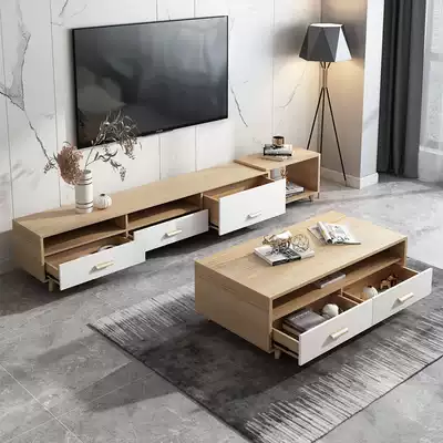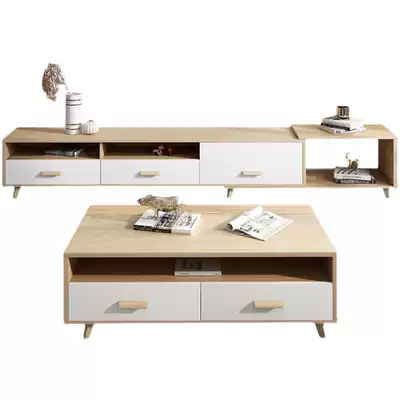 Nordic wood color coffee table TV cabinet combination simple household living room bedroom floor cabinet telescopic simple TV cabinet