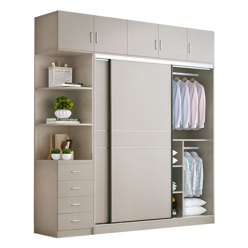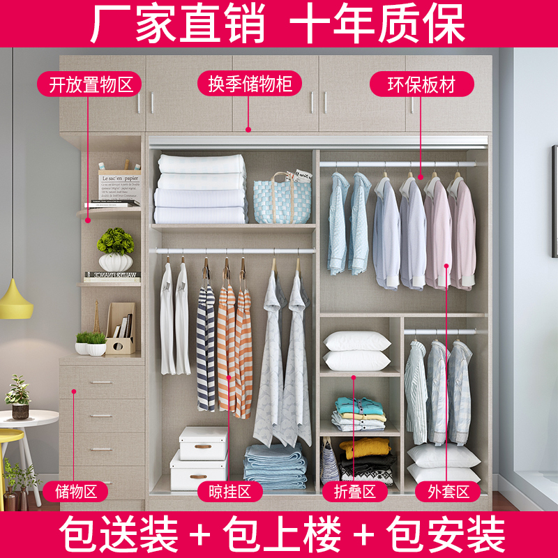Solid wood wardrobe home bedroom sliding door sliding door wardrobe bag installation modern simple solid wood ecological board wardrobe