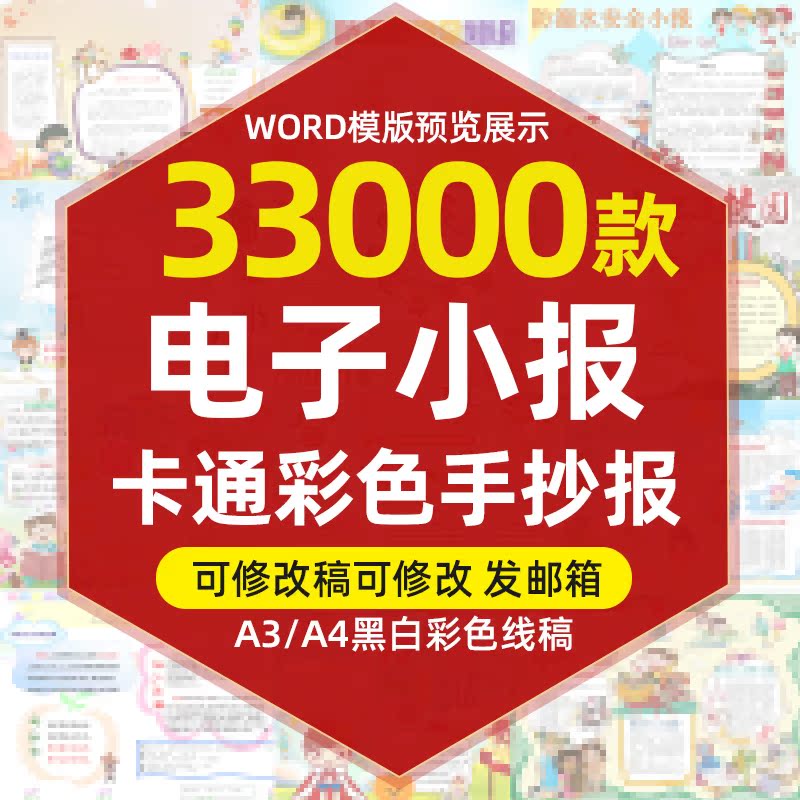 Cartoon electronic tabloid template A4 A3word file hand-copied newspaper primary school kindergarten various program materials