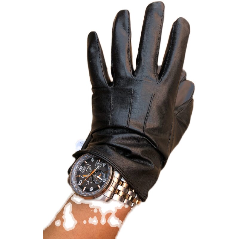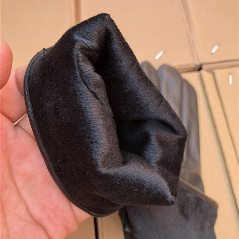 Warm velvet gloves black leather plus velvet warm cold-proof knight gloves winter cold and wind protection