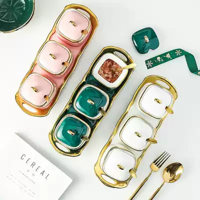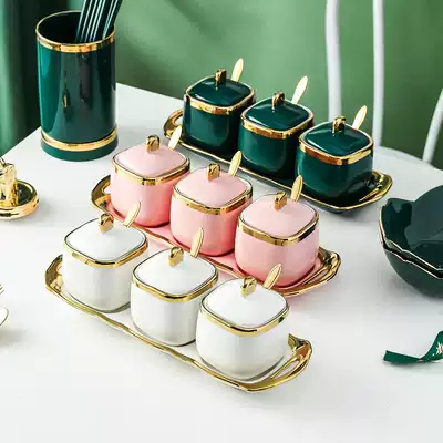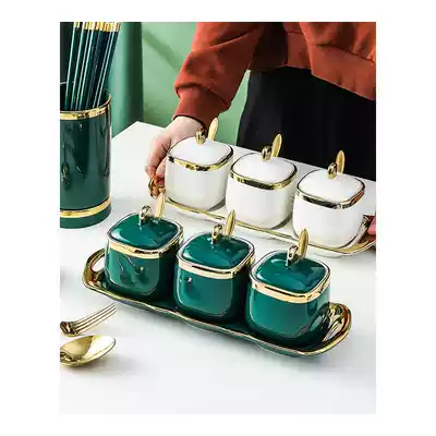 McLaren light luxury seasoning tank Ceramic seasoning box Seasoning bottle Salt monosodium glutamate tank Kitchen household with lid