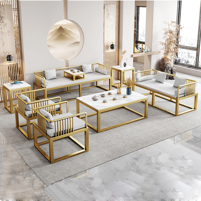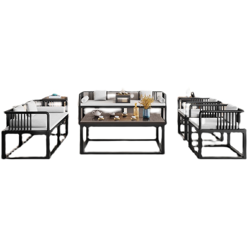New Chinese style wrought iron sofa light luxury combination Zen reception fabric solid wood coffee table office reception visitor negotiation table and chairs