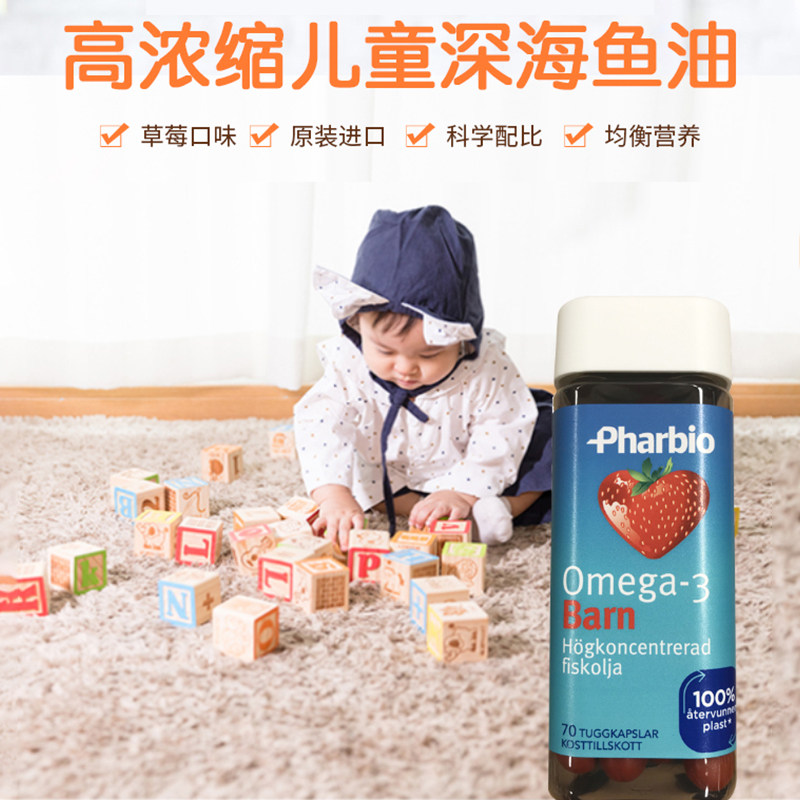 Swedish direct mail Pharbio high purity omega-3 children Students fish oil DPA EPA strawberry flavor 70