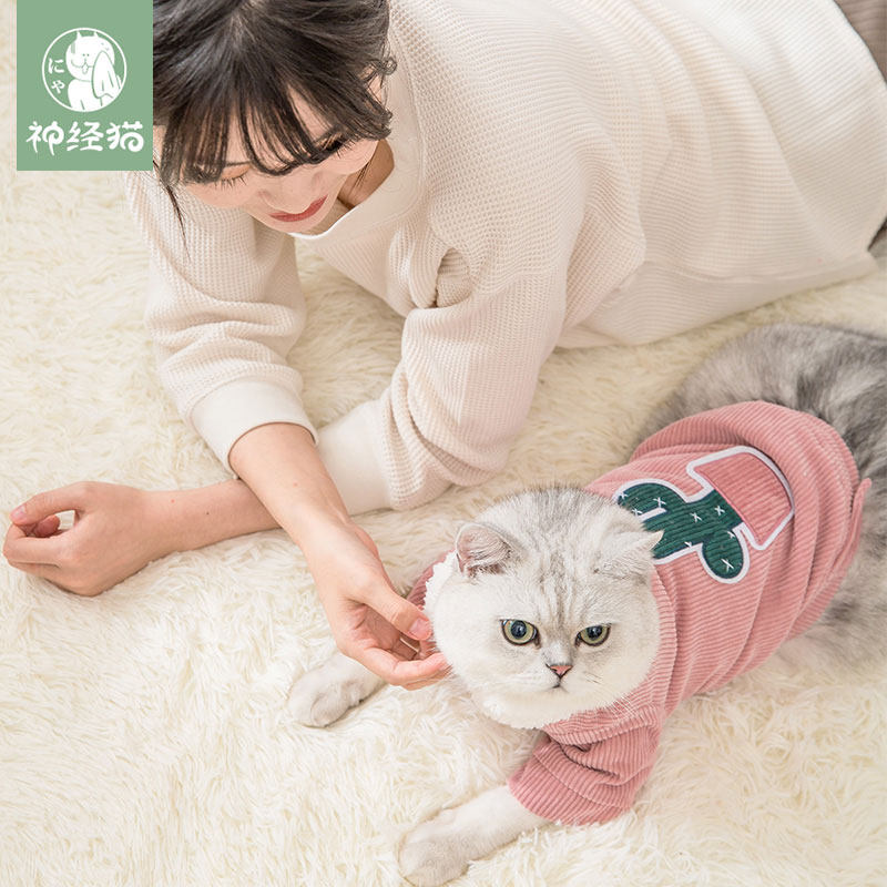 Cat clothes autumn and winter cute warm thickening British short Garfield blue cat corduroy pet milk cat cotton coat