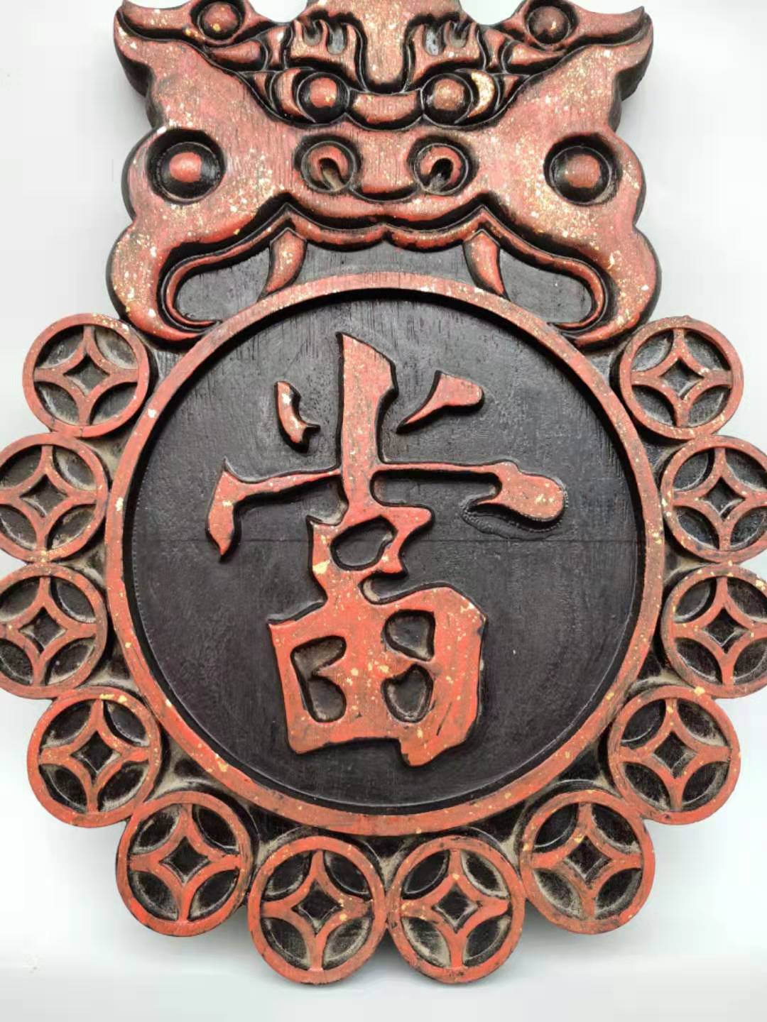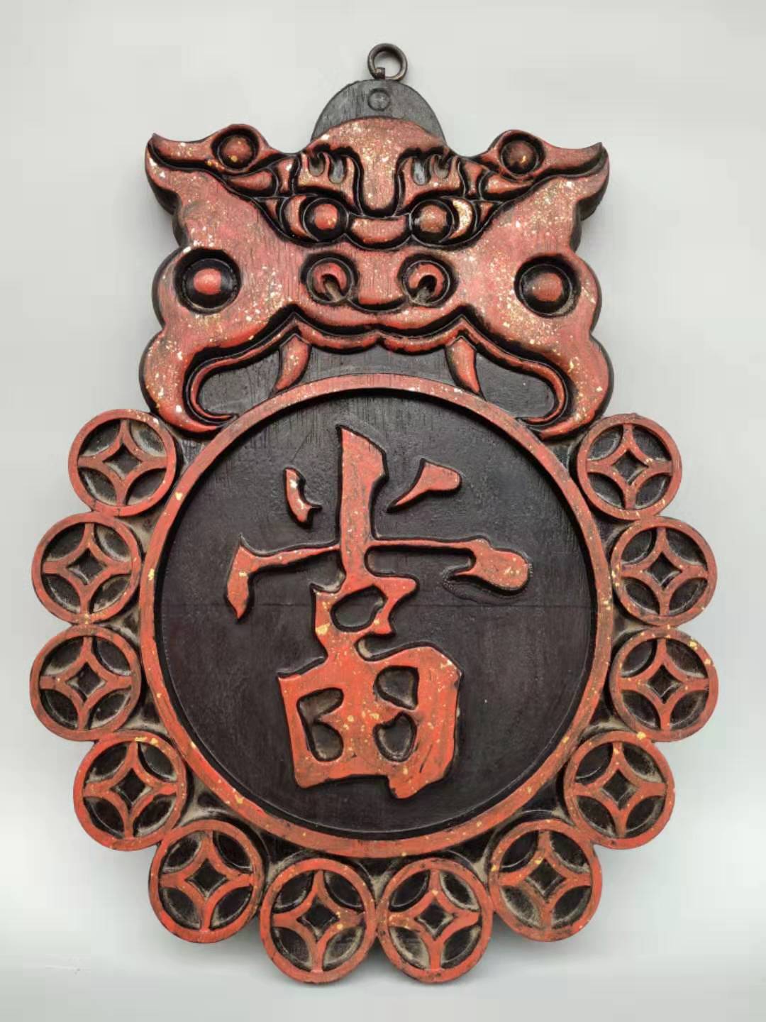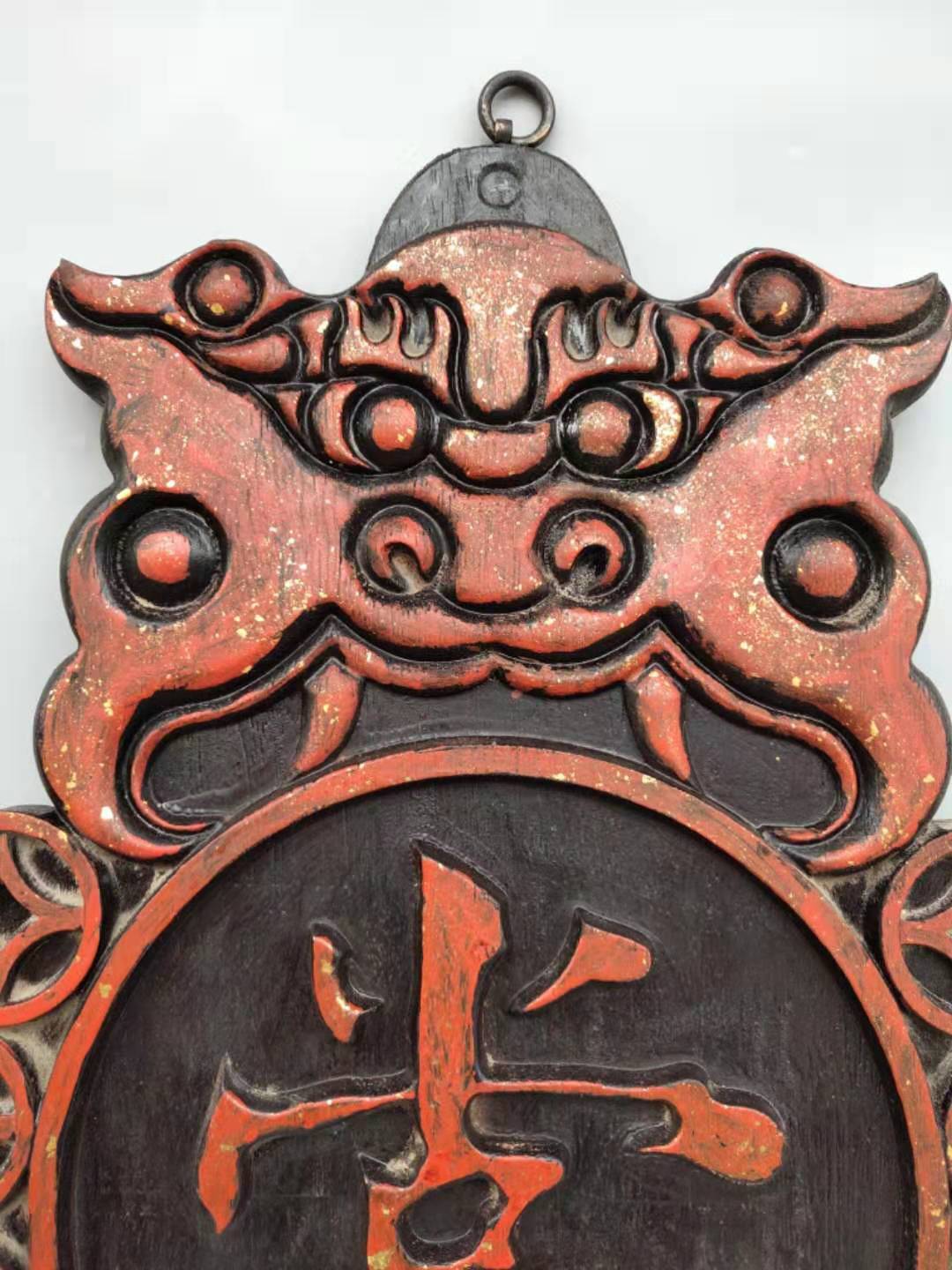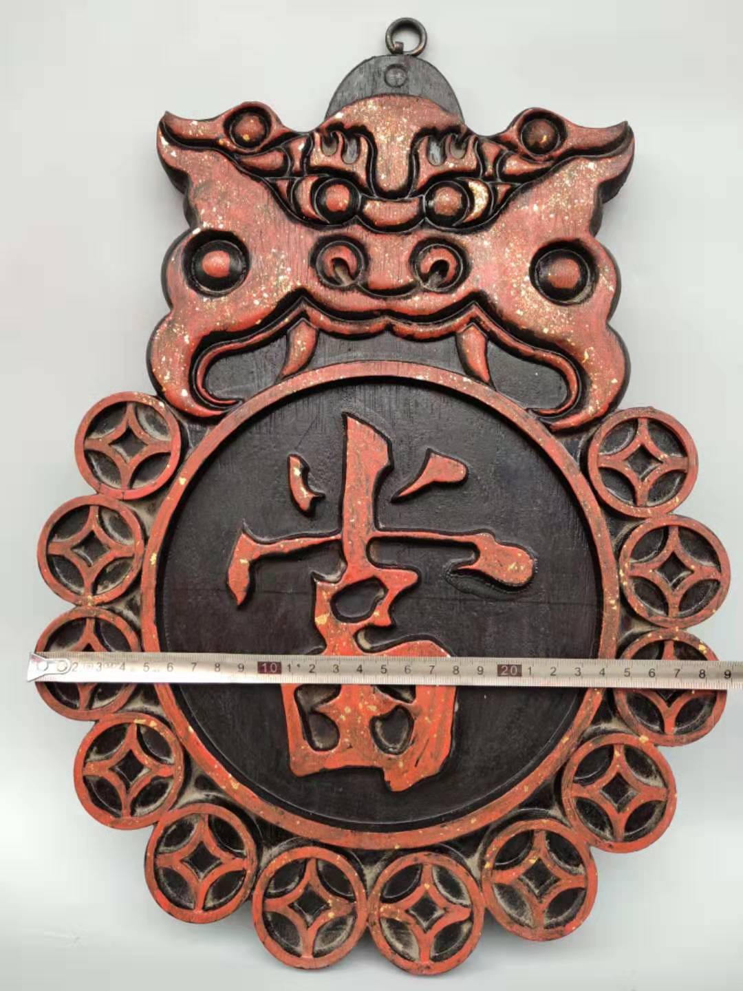 Folk collection old antiques old Tibetan old wooden tire lacquer hanging screen old pawnshop hanging flat ornaments