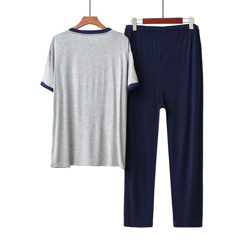 Modale men's sleepwear loose suit Male short sleeve long pants V neckline head casual home for spring and summer