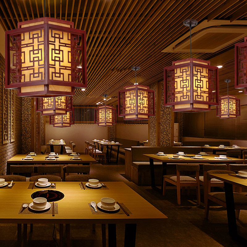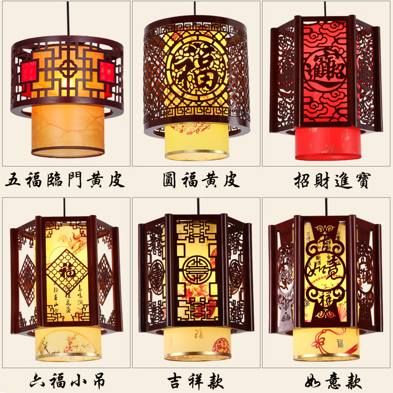 Chinese dining room small chandelier Chinese style antique hotel teahouse hotpot restaurant corridor solid wood lamp creative balcony lamps