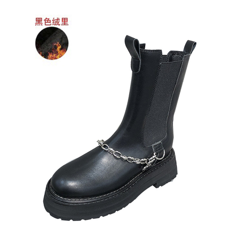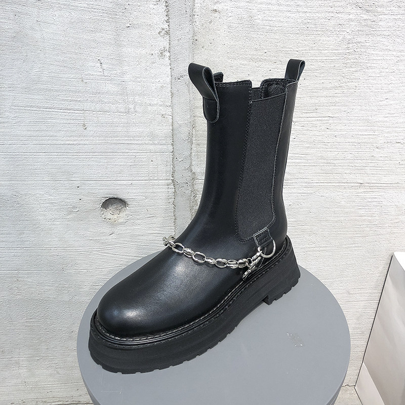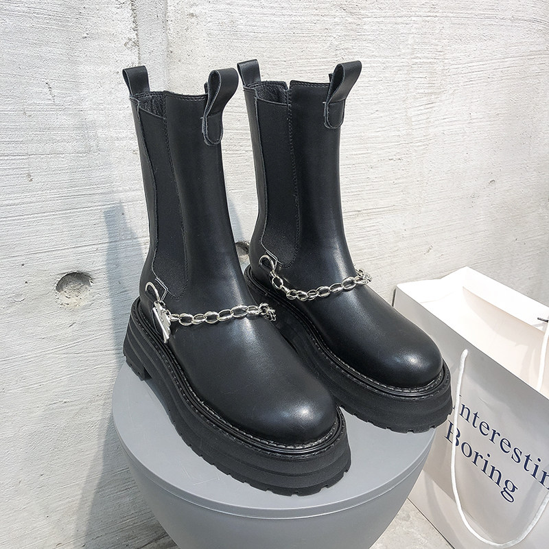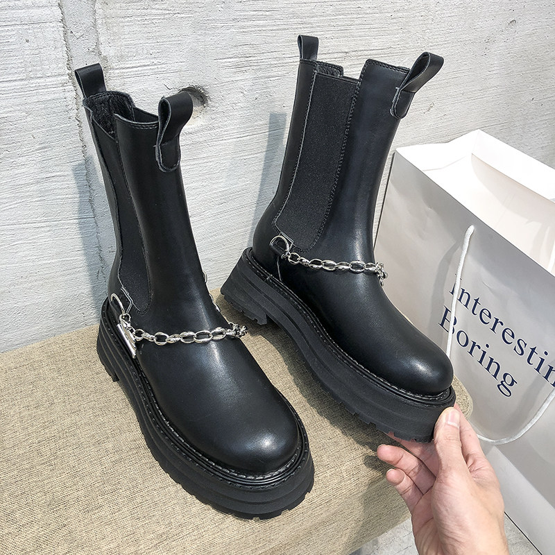 Martin boots women's 2021 new British style round head wild thick heel sponge cake thick bottom chain Chelsea short boots women