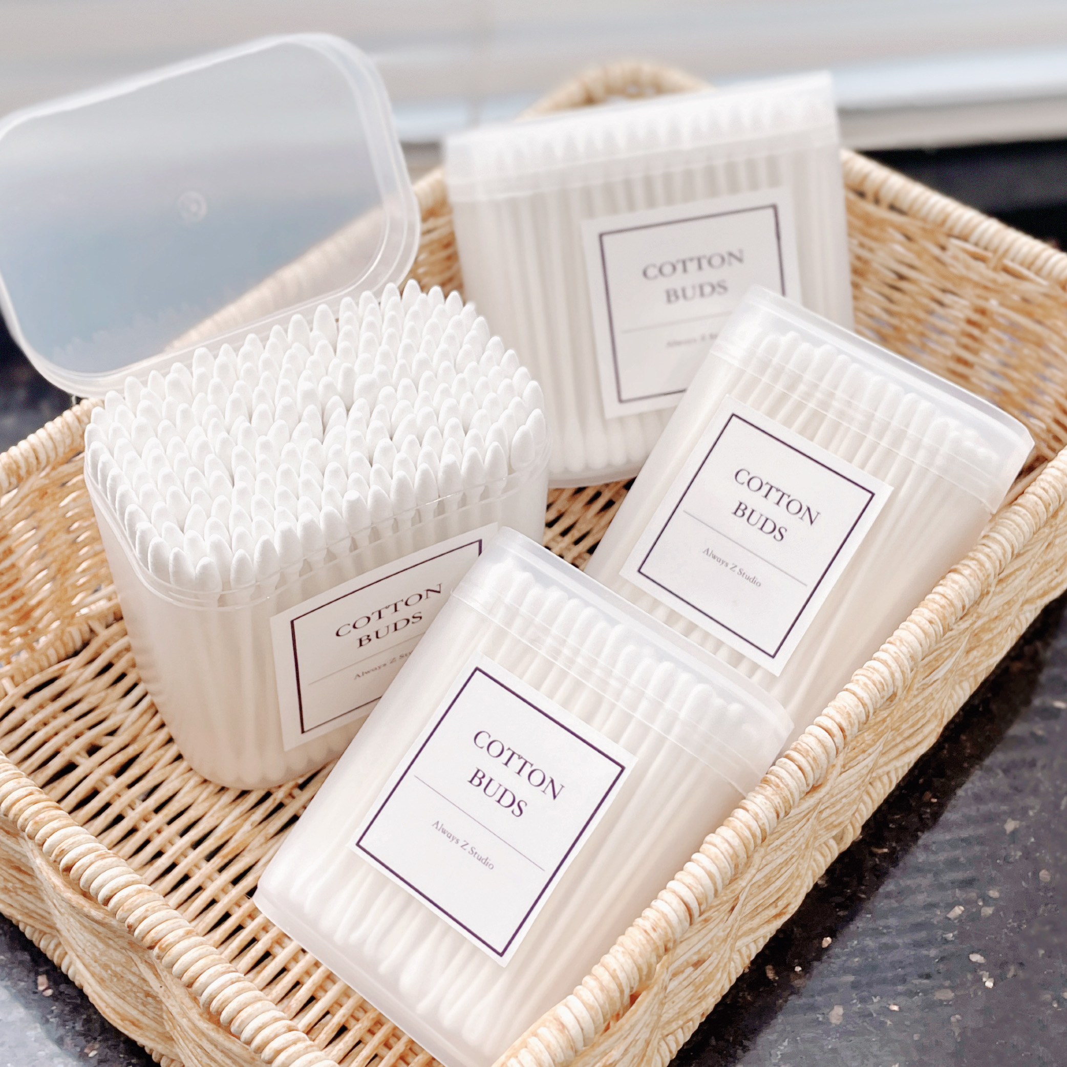 AlwaysZ white double-headed makeup remover round head ear spoon cotton swab infants and young children can use ultra-fine cotton swabs