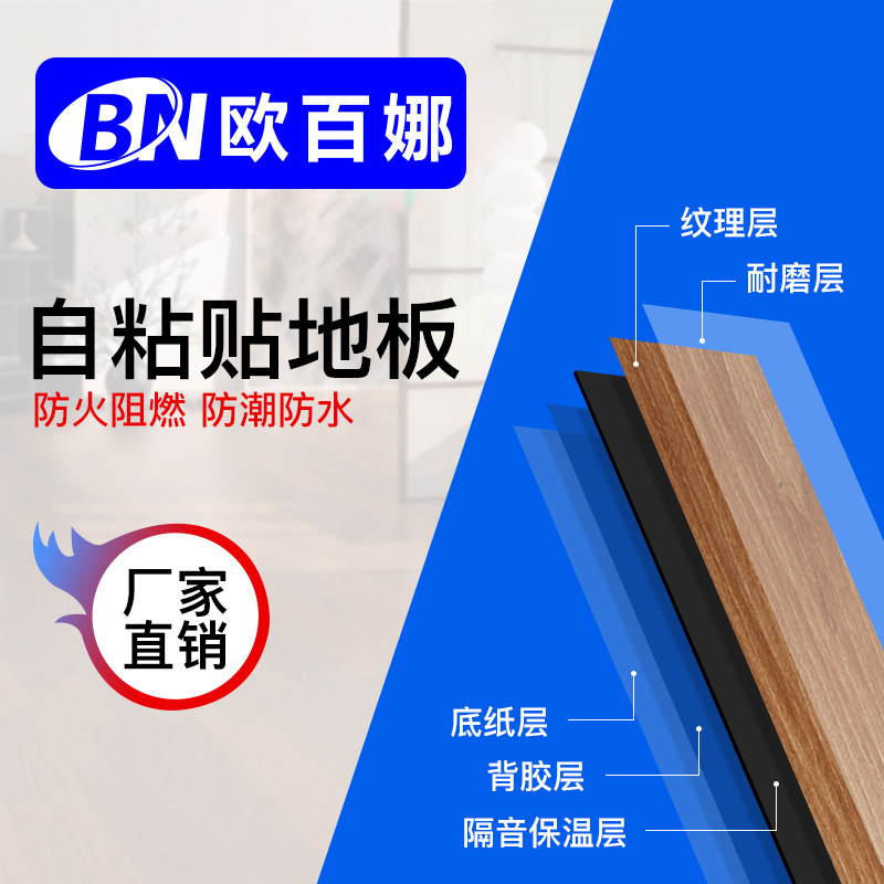 OBINA Household Environmental PVC Floor Leather Anti-Slide Cement Floor Pasted Wood-Length Self-Clay Floor