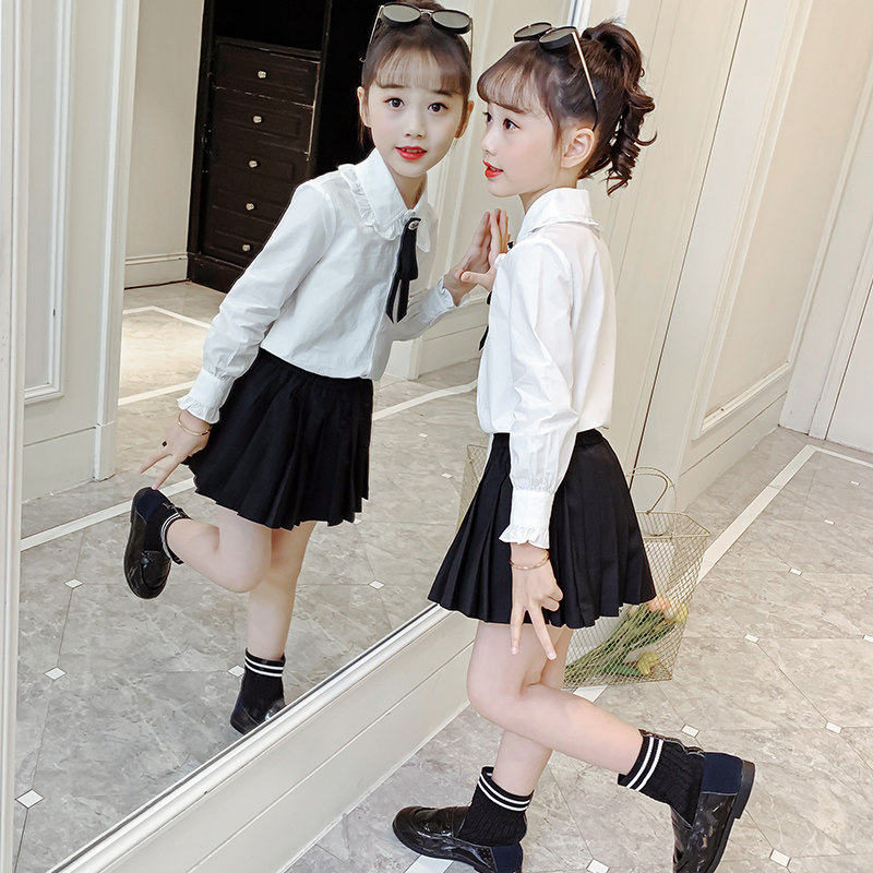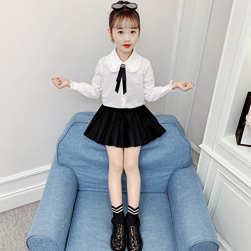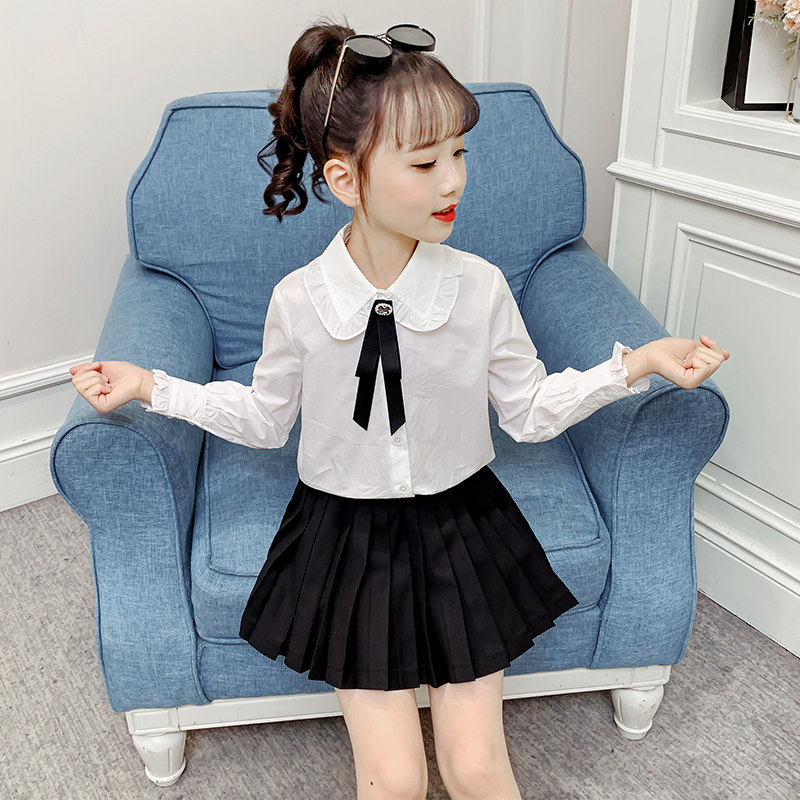 Girls' shirts long-sleeved spring and autumn dress princess white Western style 10-year-old primary school student jk uniform children's college wind top