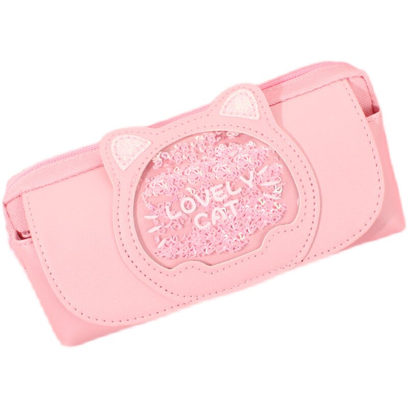Cat head quicksand pencil bag cute creative girl heart ins tide girl canvas large capacity student pencil pencil case