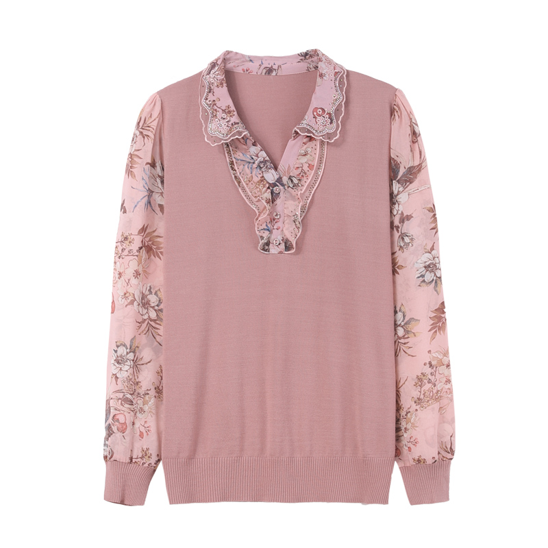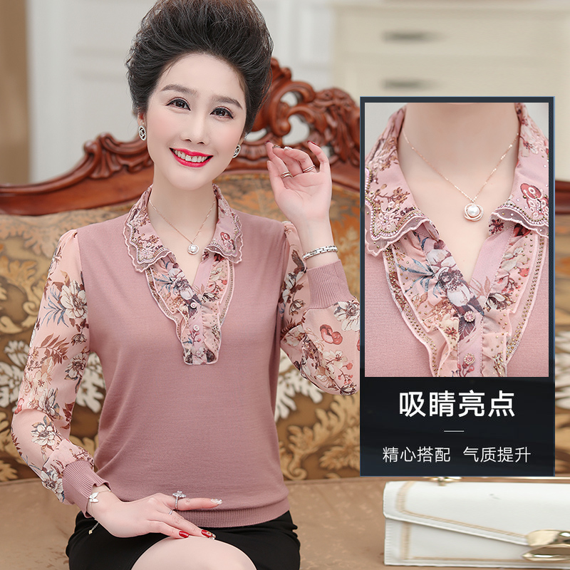 Middle-aged and elderly women's spring and autumn clothes flipped T-shirts for undershirts 2021 new 45 ten-year-old moms long sleeve blouses