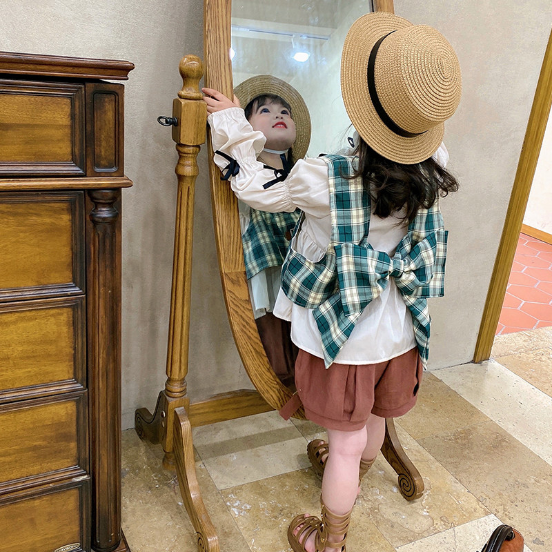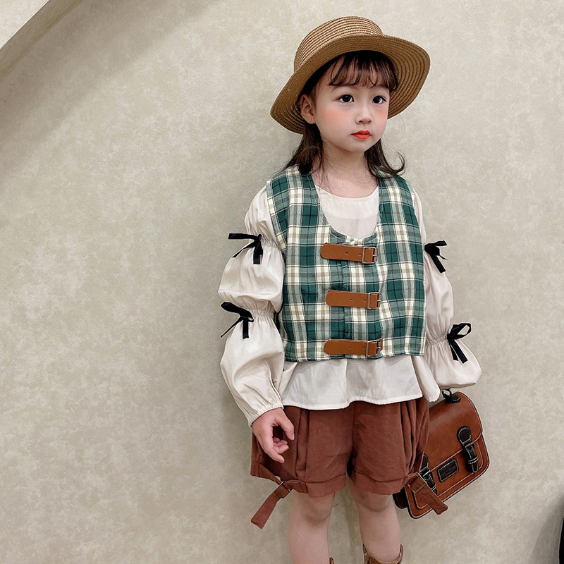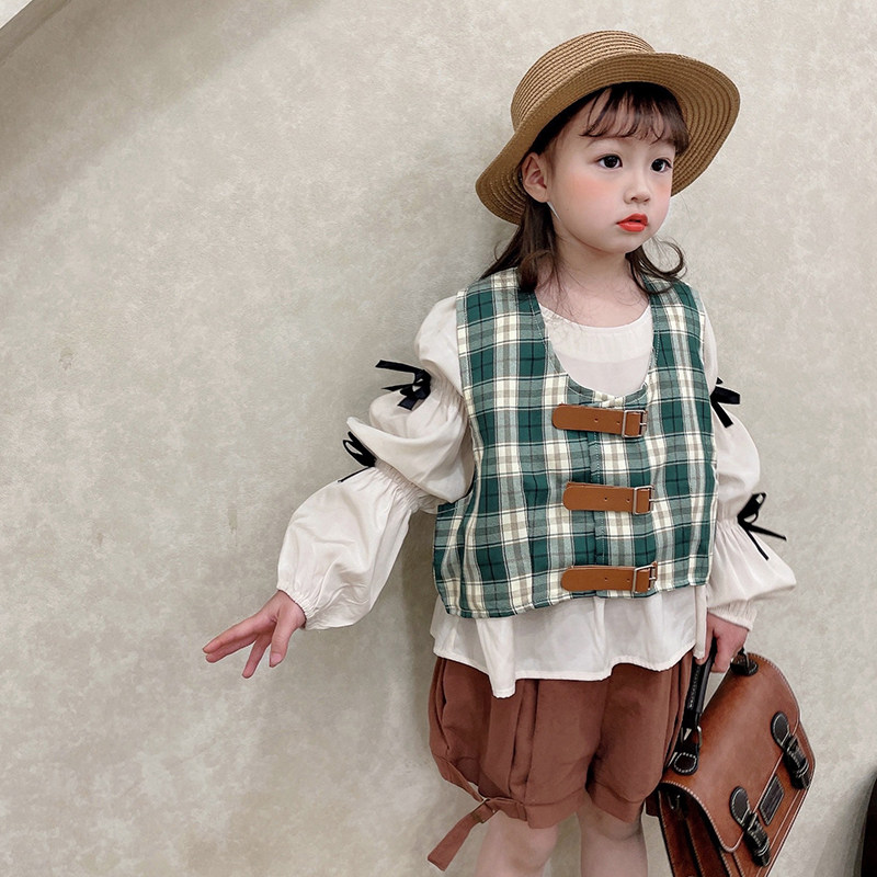 66 princess girls vest baby baby children vest horse clip spring and autumn thin section outer wear plaid waistcoat western style summer