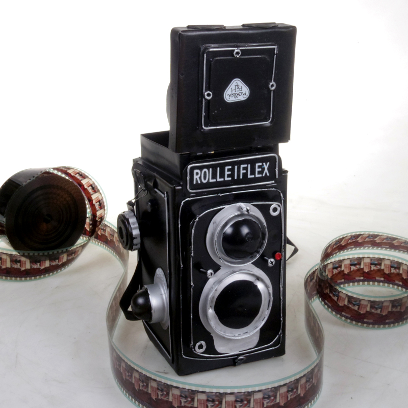 Nostalgic old fashioned sheet metal Rolleflex double anti-old camera model retro photographic props styling elements