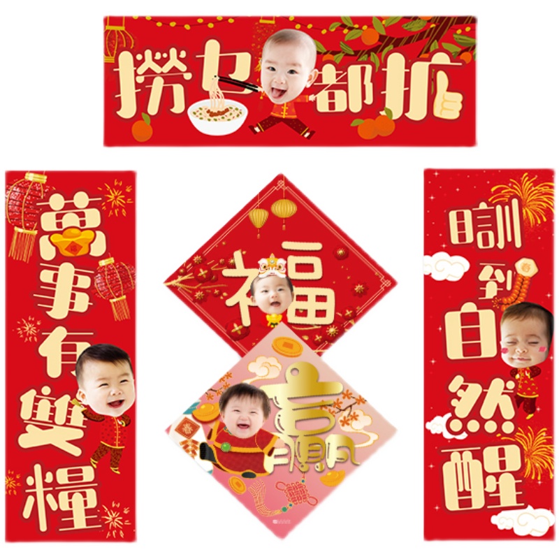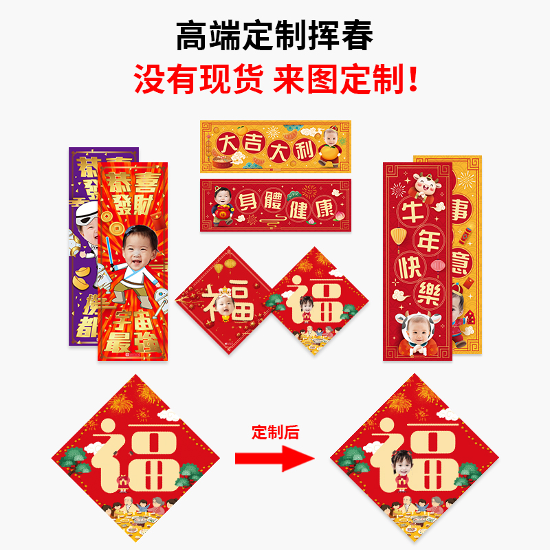 Couplets Spring Festival home 2022 Year of the Tiger Spring Festival couplets New Year baby avatar custom creative Hunchun door stickers door Fuhui