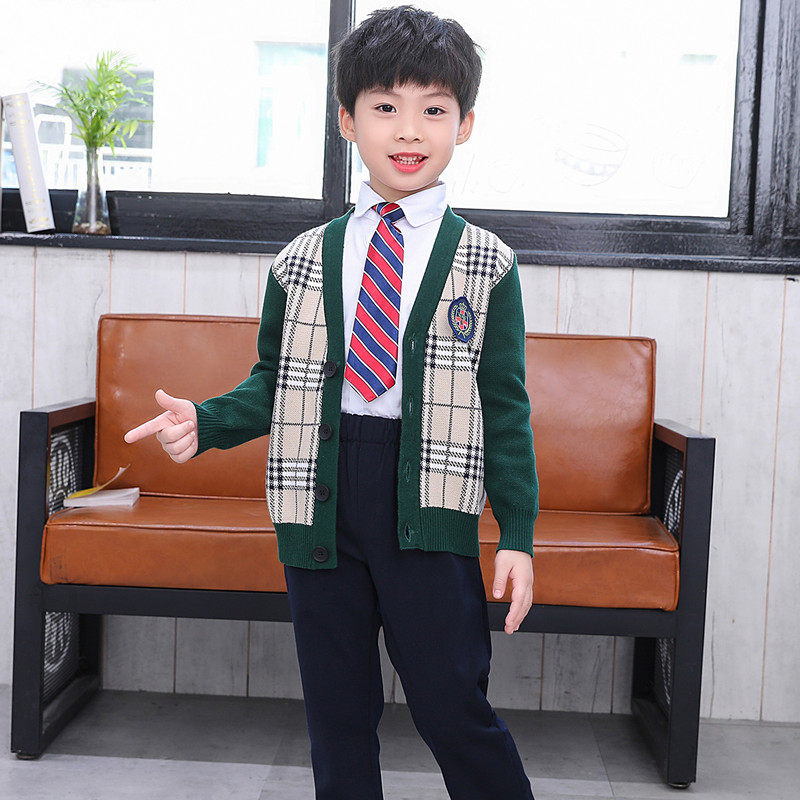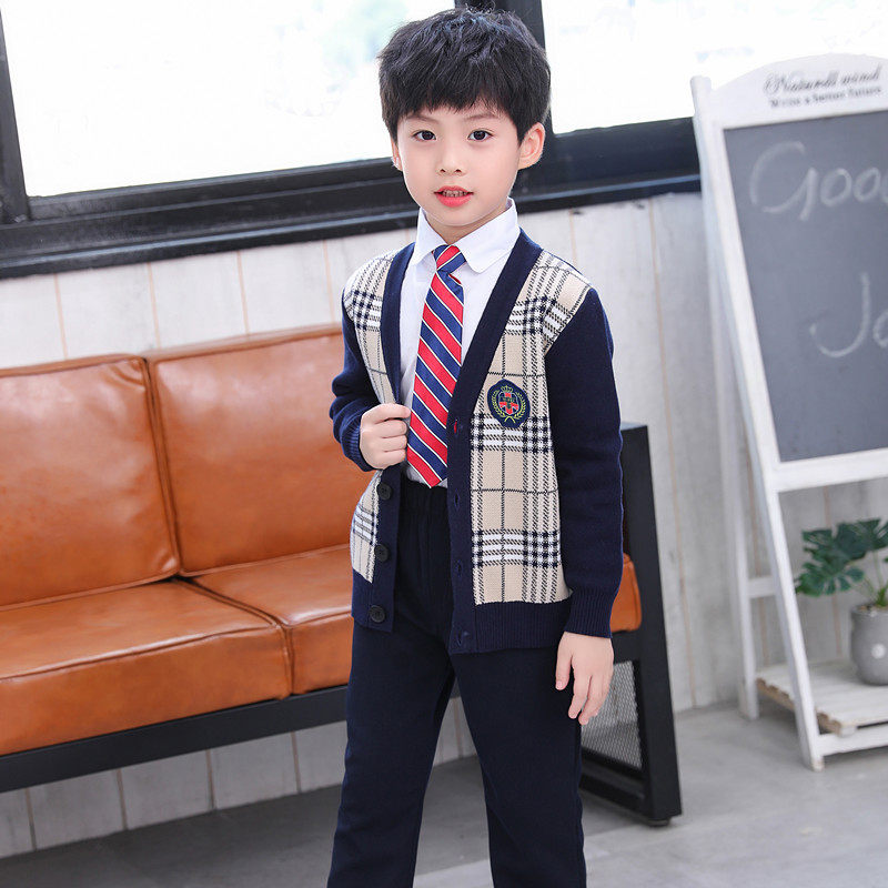 Kindergarten school uniform primary school uniform cotton sweater suit boys and girls class service British style spring and autumn three-piece suit
