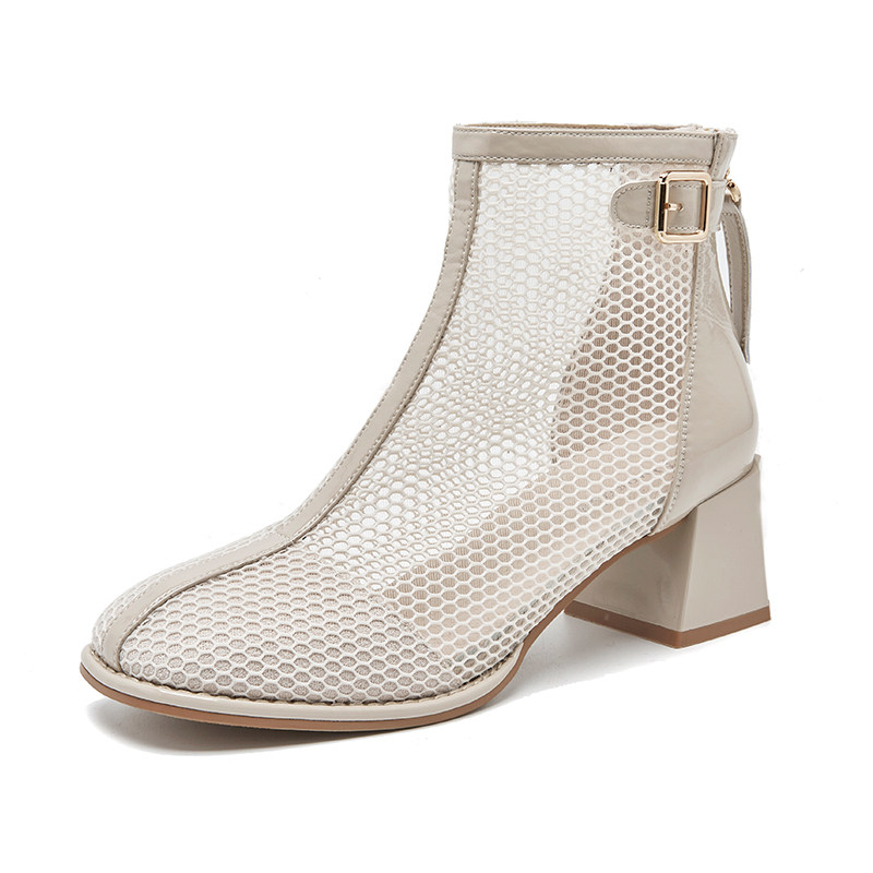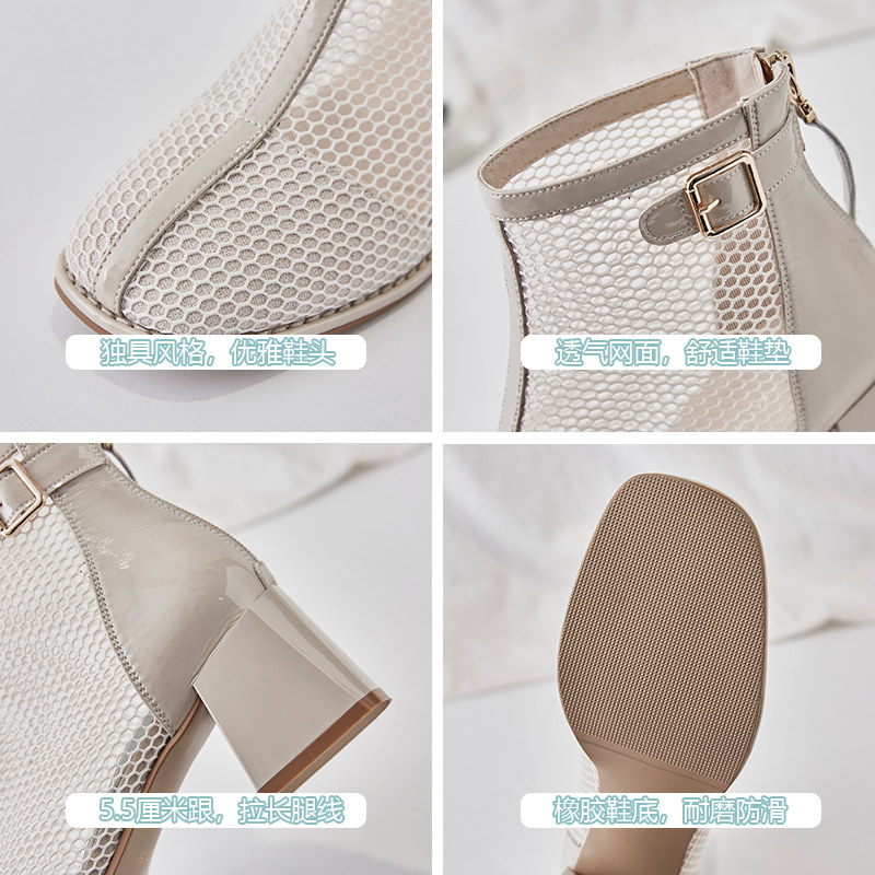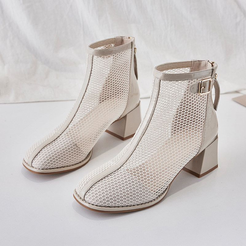 Thick heel mesh boots women's 2022 spring and summer new women's shoes hollow mesh Martin boots thin breathable medium high heel sandals