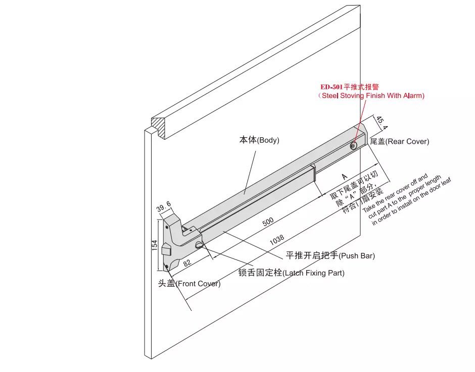 GMT push rod lock with alarm Fireproof push rod lock ED-501 Flat push steel paint alarm