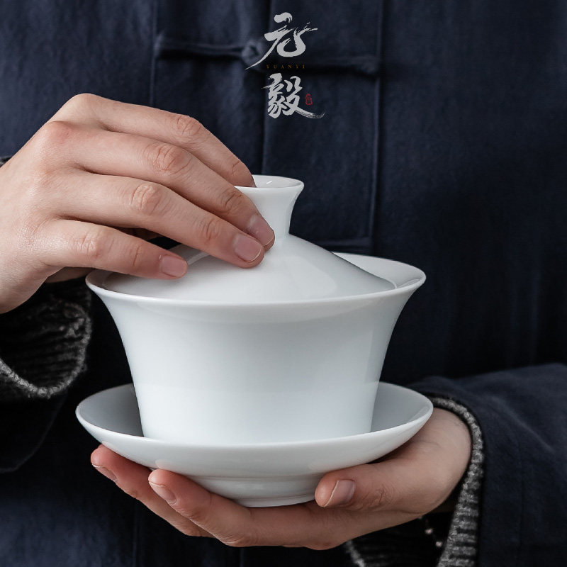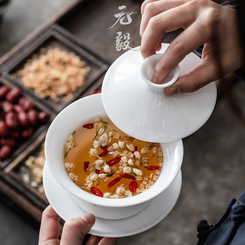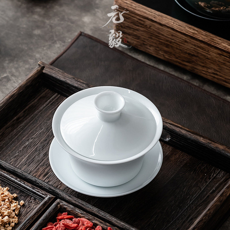 Defied ceramic large number single 300ml extra-large pure white porcelain three-only cover bowl tea cup health care eight precious tea bubble tea bowl
