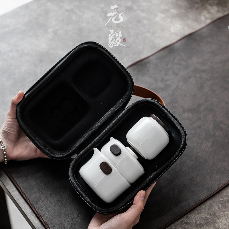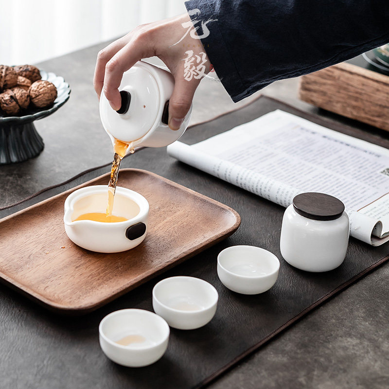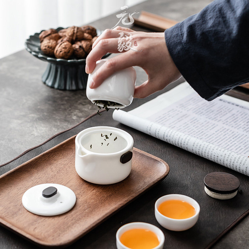 Defied white porcelain modern minimalist office a pot of three cups portable outdoor travel Gongfu tea with small set of tea maker-Taobao
