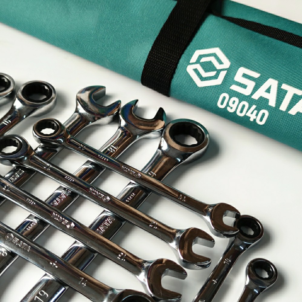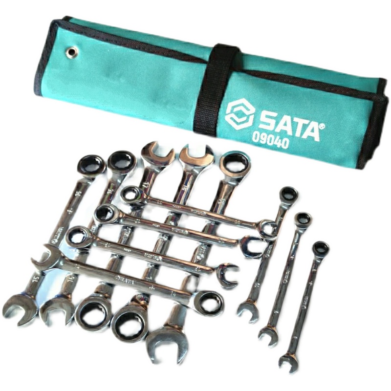 SATA Shida Tools Suit 12 Pieces Full Polished Opening Quick Pull Car Repair Sleeve Wrench Set 09040