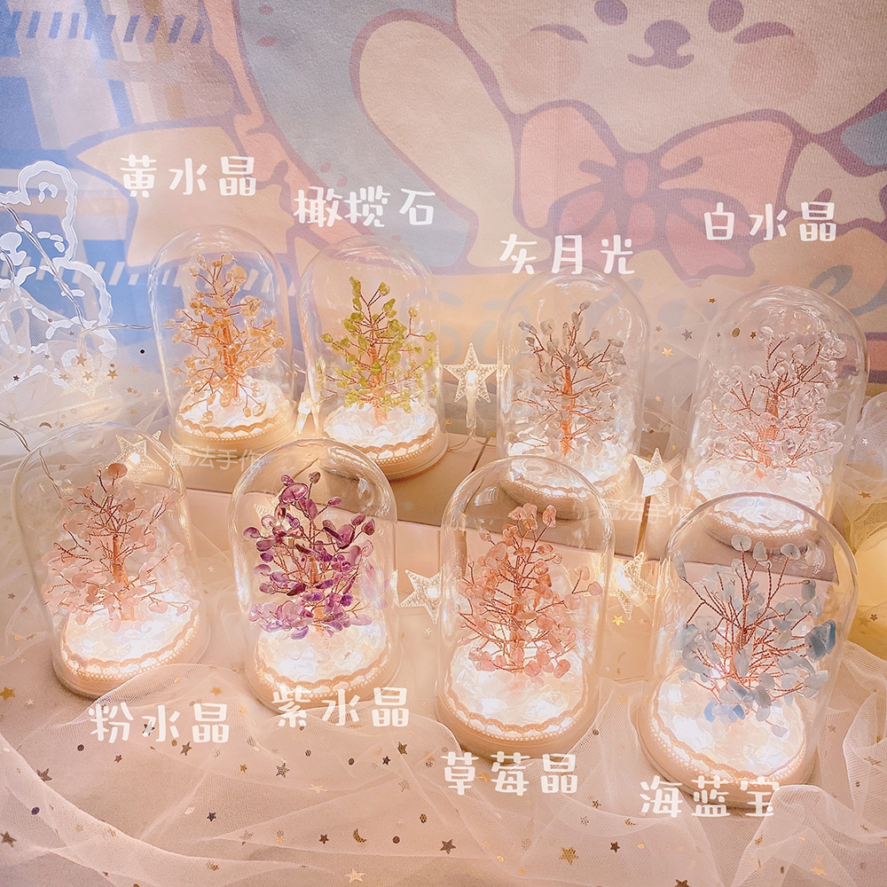 Pink crystal amethyst strawberry citrine citrine olivine lime moonlight aquamarine white crystal multi-treasure tree All the bases will glow Oh ~ super good-looking