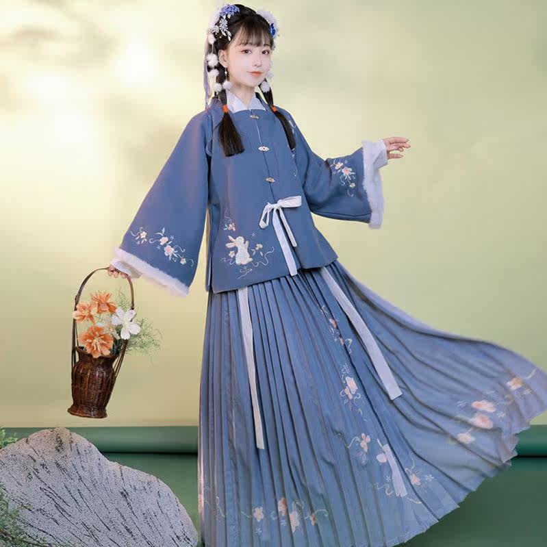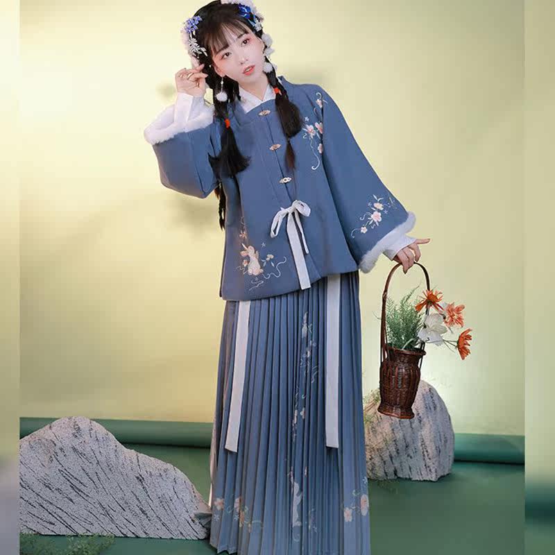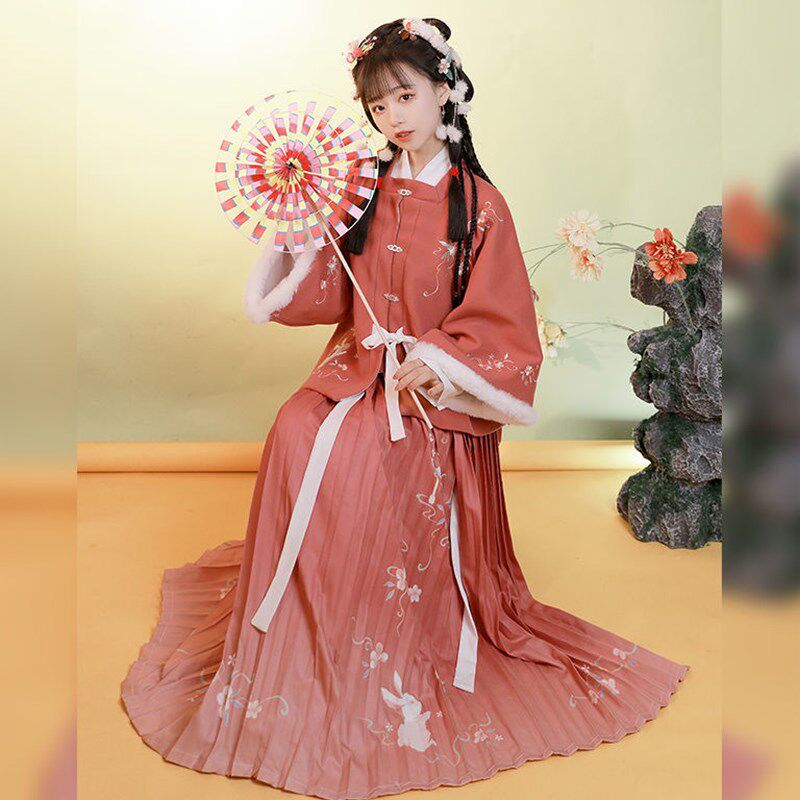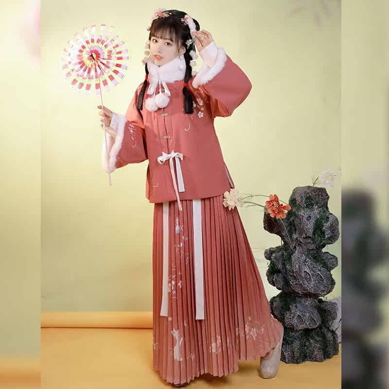 Ming System Three sets of Han uniforms winter (lacquered) Chinese wind female winter style Thickened Square Collar Half Sleeve Cape and Autumn Winter Full set