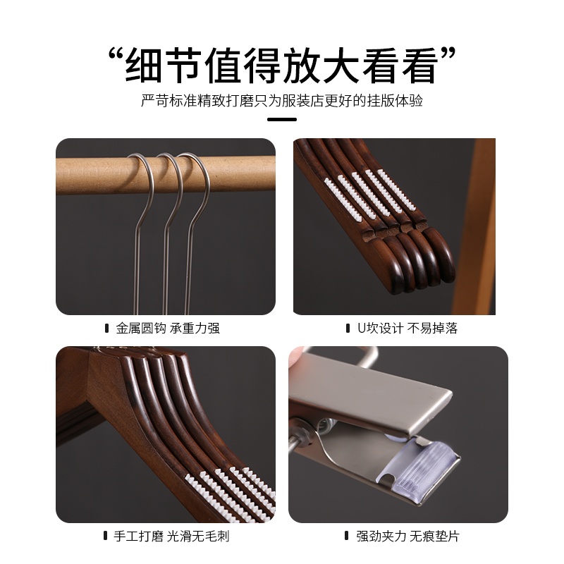 Vintage clothing store special solid wood hangers Hotel non-slip non-trace wood wooden hangers Women's clothing hang customization