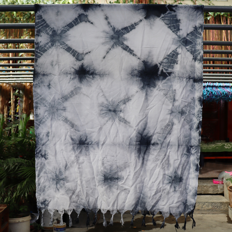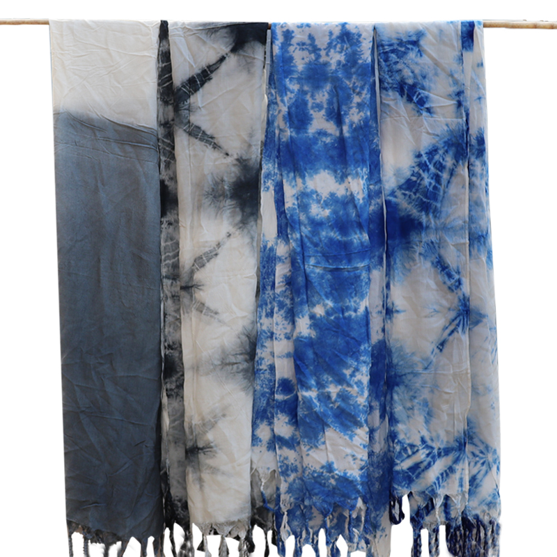 Yunnan Dali Bai tie-dyed scarf shawl handmade blue-dyed plant-dyed cotton and linen literary and artistic long scarf sunscreen travel shot