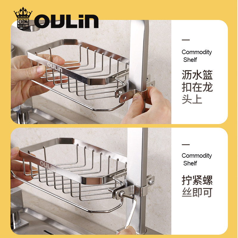 Ou Lin stainless steel faucet shelf No punching kitchen faucet storage drain rack Shower shower stock