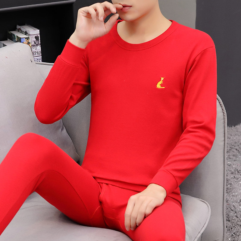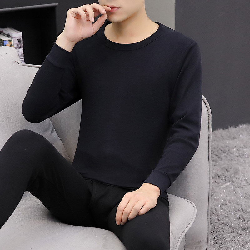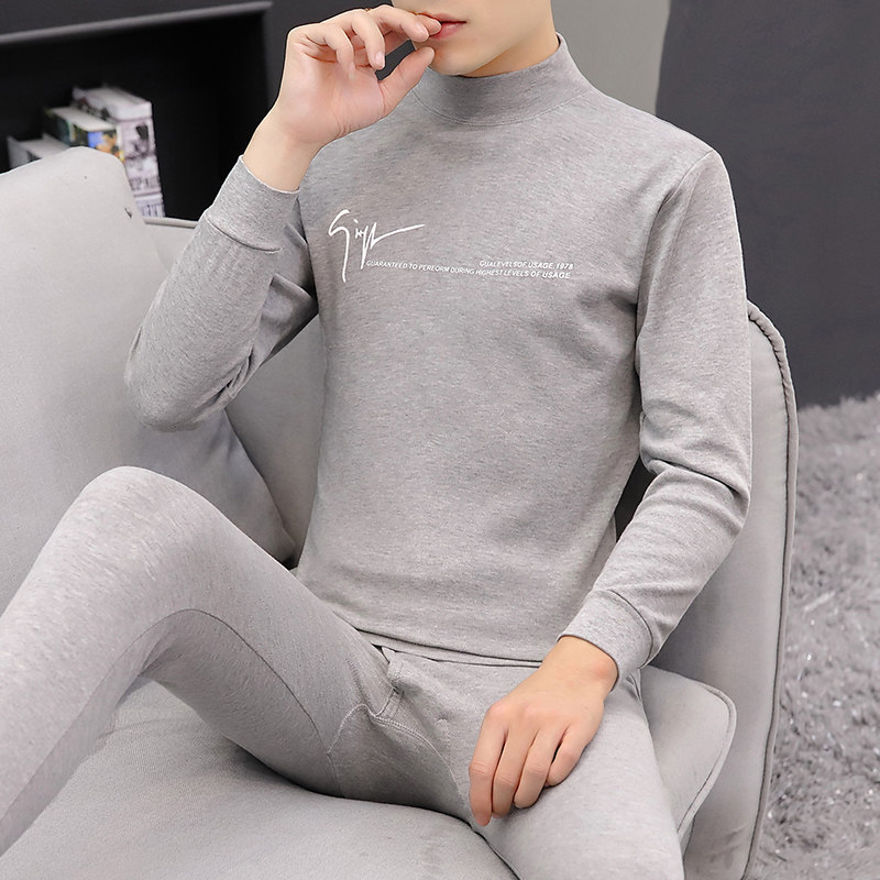 Youth pure cotton autumn clothes sanitary pants men's thermal underwear set thin shirts underwear set turtleneck cotton sweater set