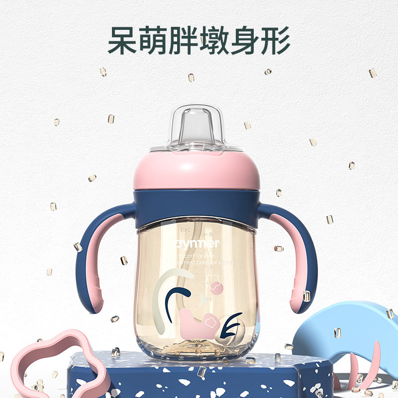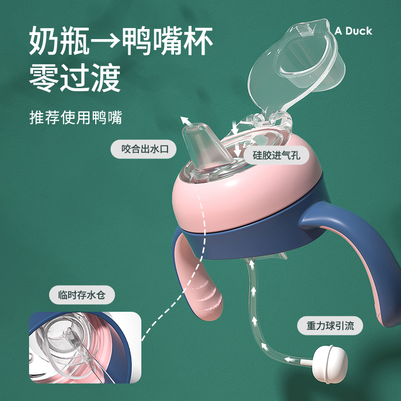 Children's straw cup Duckbill cup Baby learning cup Drop-proof baby drinking cup Children's dual-use milk cup with handle