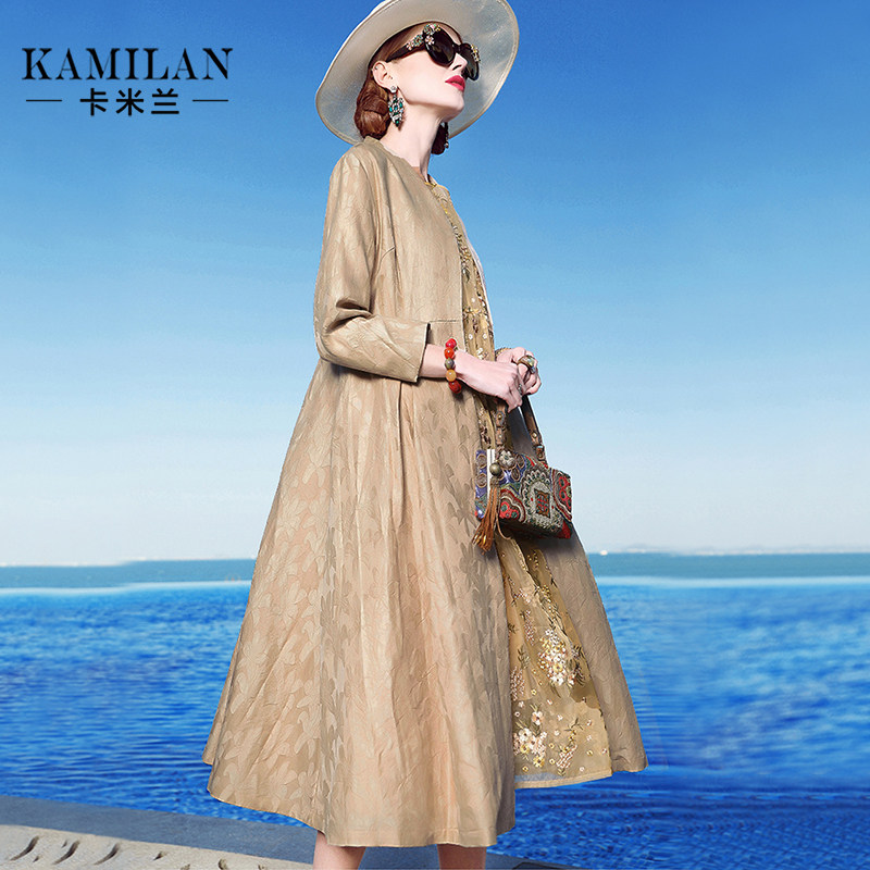CaMilan winewear woman medium long version 2022 spring autumn new pint loose large swing type European and American fashion 100 hitch long sleeve jacket
