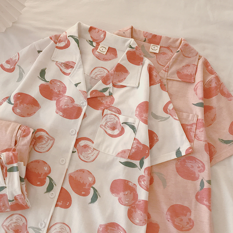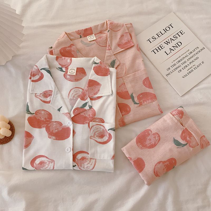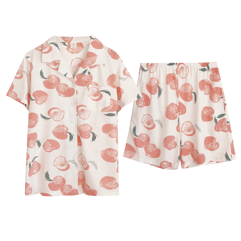 Cotton pajamas women's summer short-sleeved shorts Japanese students cute peach spring and autumn home service two-piece suit