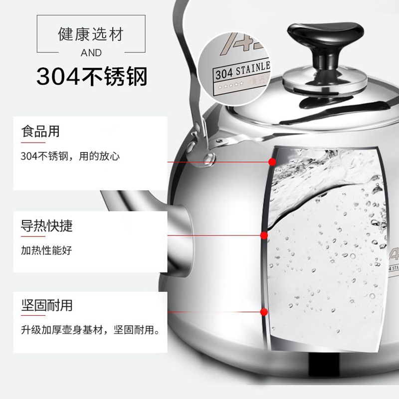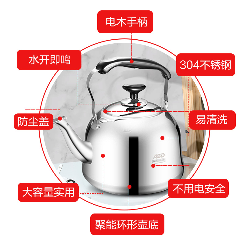 Ashida 304 stainless steel kettle large capacity honking whistle home kettle gas induction cooker gas gas universal 110