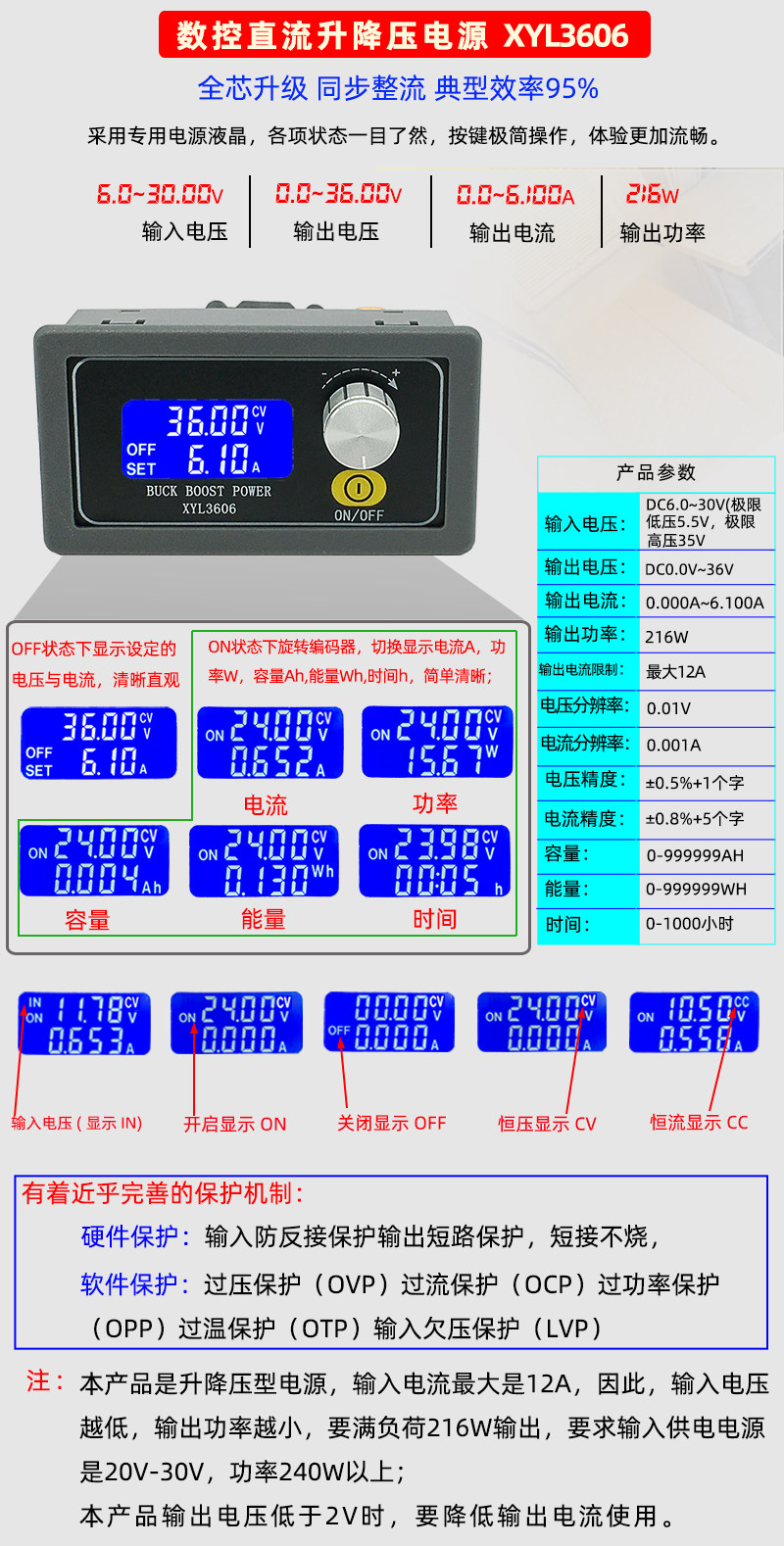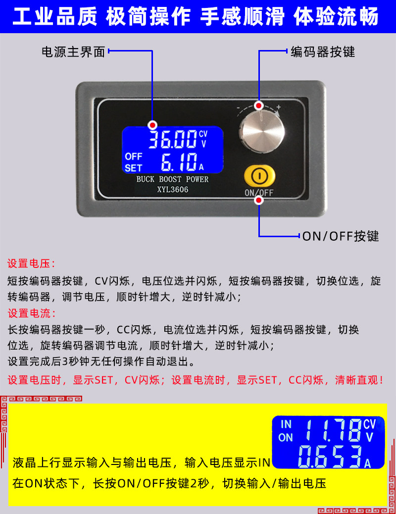 XYL3606 CNC DC voltage-regulating power supply constant voltage and constant current maintenance 36V6A automatic step-up and buck module