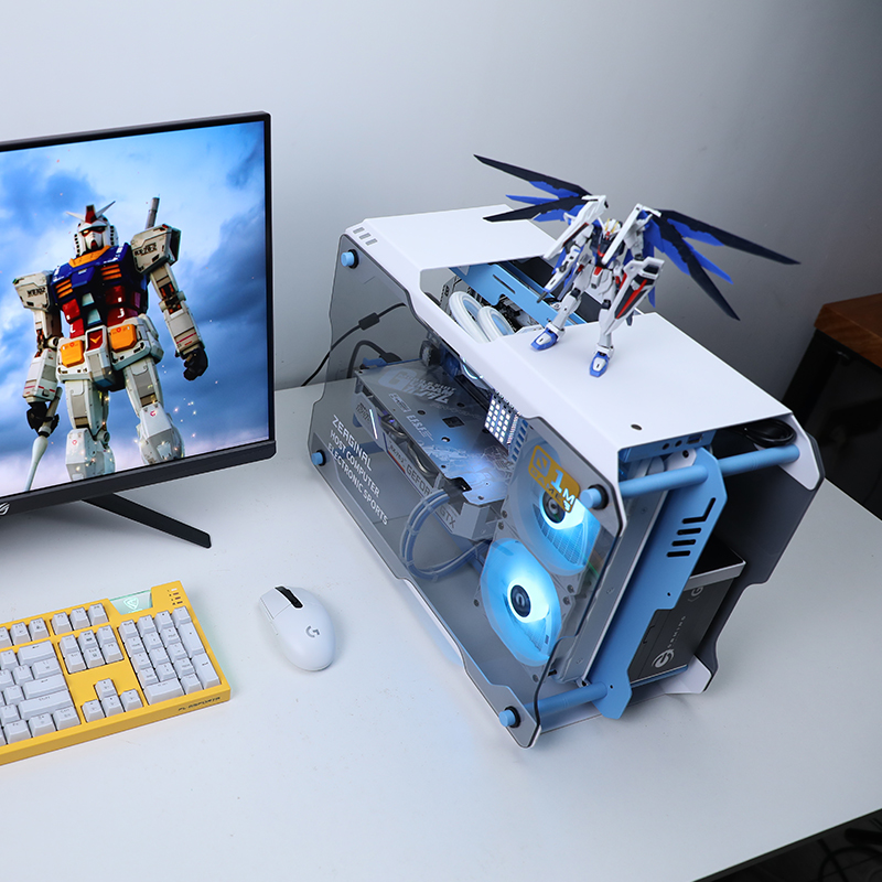 Blue and white custom style (single case) Blue and white customized host shell flower marry 240 water cooled blue white customized host shell EVGA 650G5 gold fig blue and white custom made of sea pirate ship C