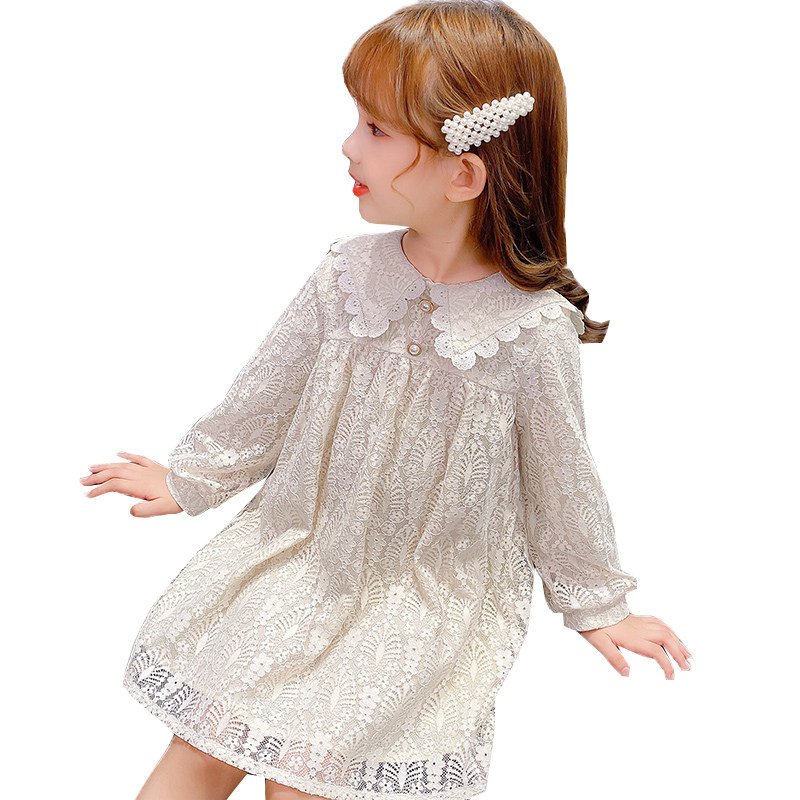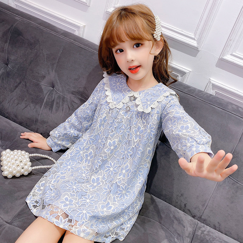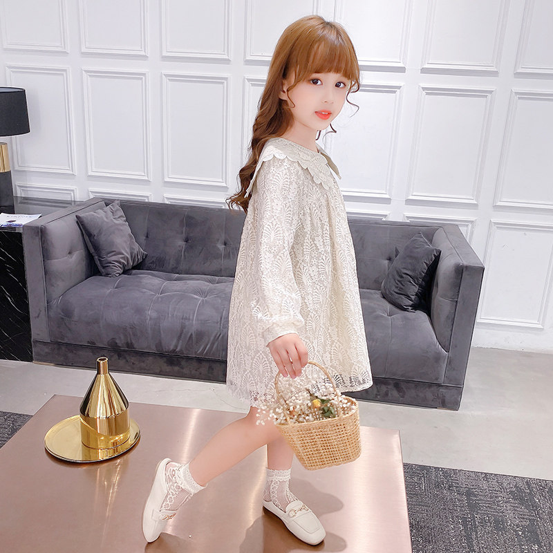 Girls Dress Spring Dress 2021 New Korean Version Children's Clothing Girl Long Sleeves Foreign Children's Lace Princess Skirt