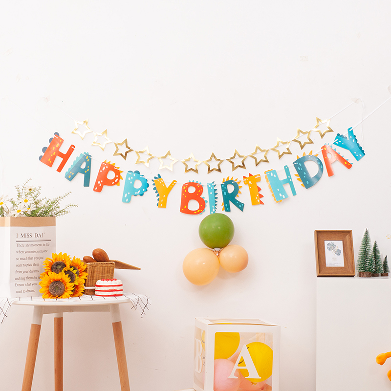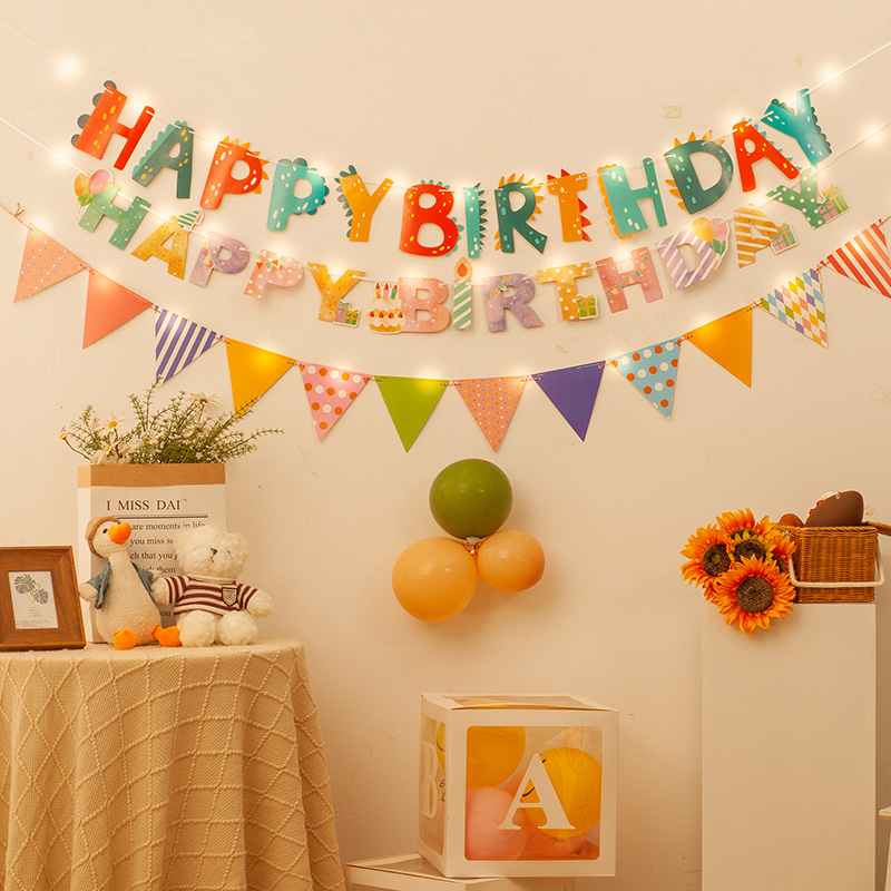 Birthday Party Triangle Flag with Lamp Birthday Decoration Scene Launch Banner of Kindergarten Flag Banner