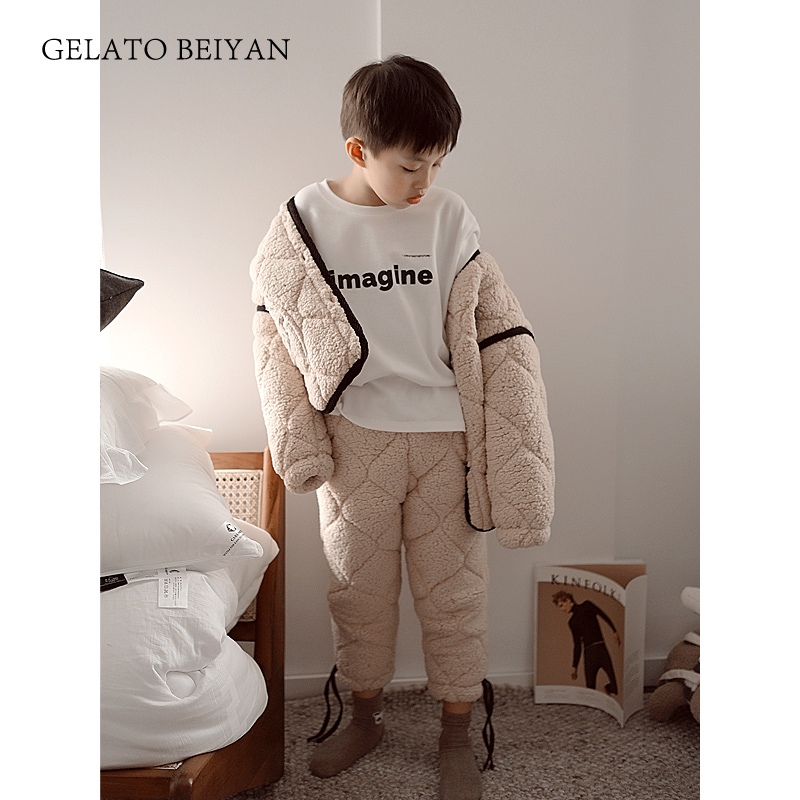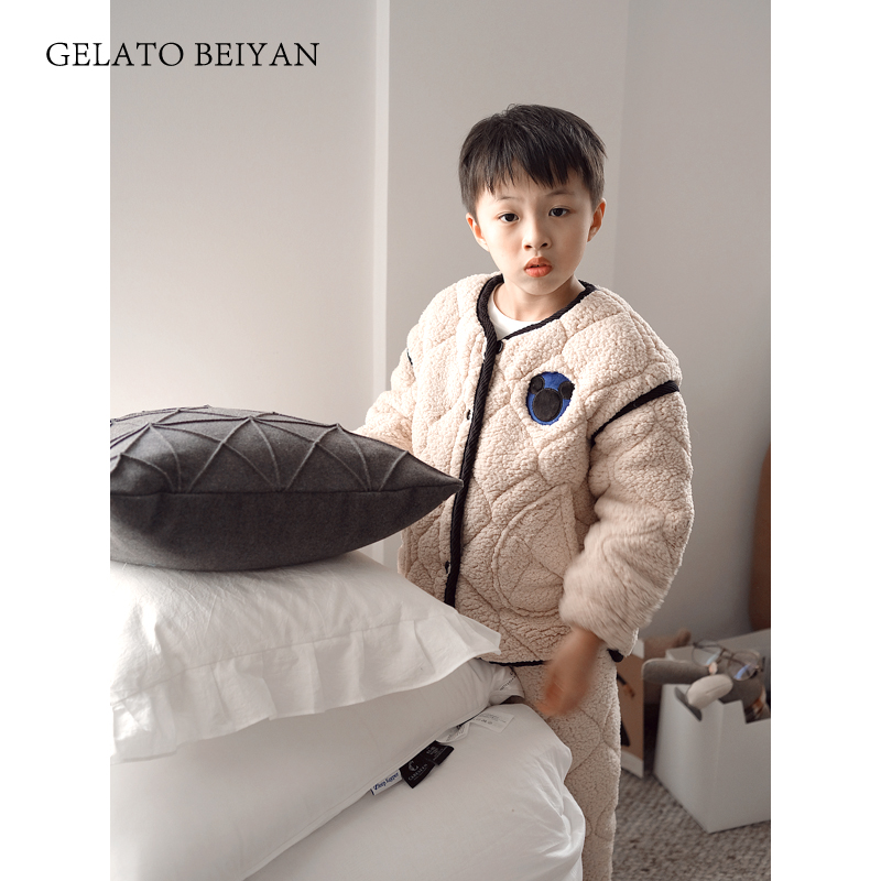 Beyan Sleeping Clothes Children Winter Coral Suede Thickened Garnter Warm Triple Laminated Cotton Baby Cute Home Suit Suit