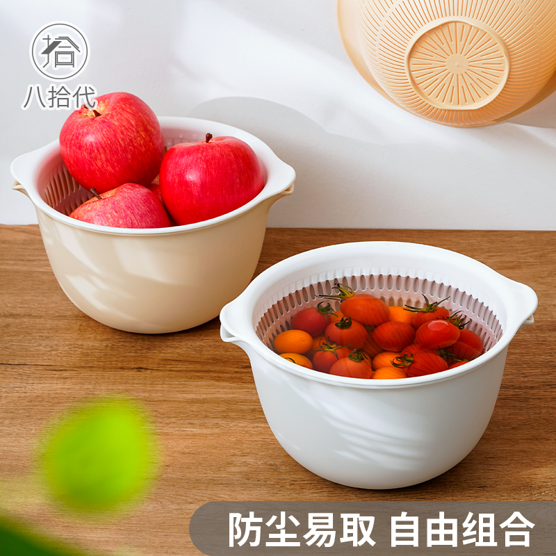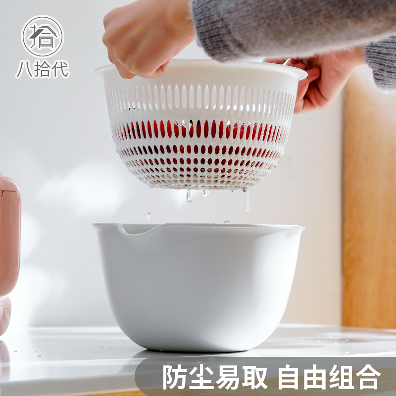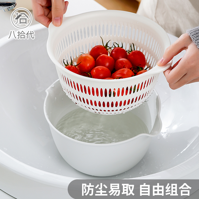 Eight-ten generation double-layer hollowed-out fruit basin wash fruit drain basket Home Big water fruit basket Creative Kitchen Wash Vegetable Basket