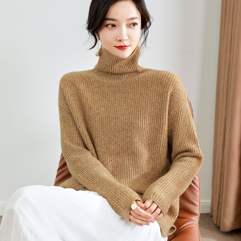 Cashmere cardiovert 100 pure wool beating undershirt autumn winter 2020 new thickened half-high collar Old-aged mother sweater