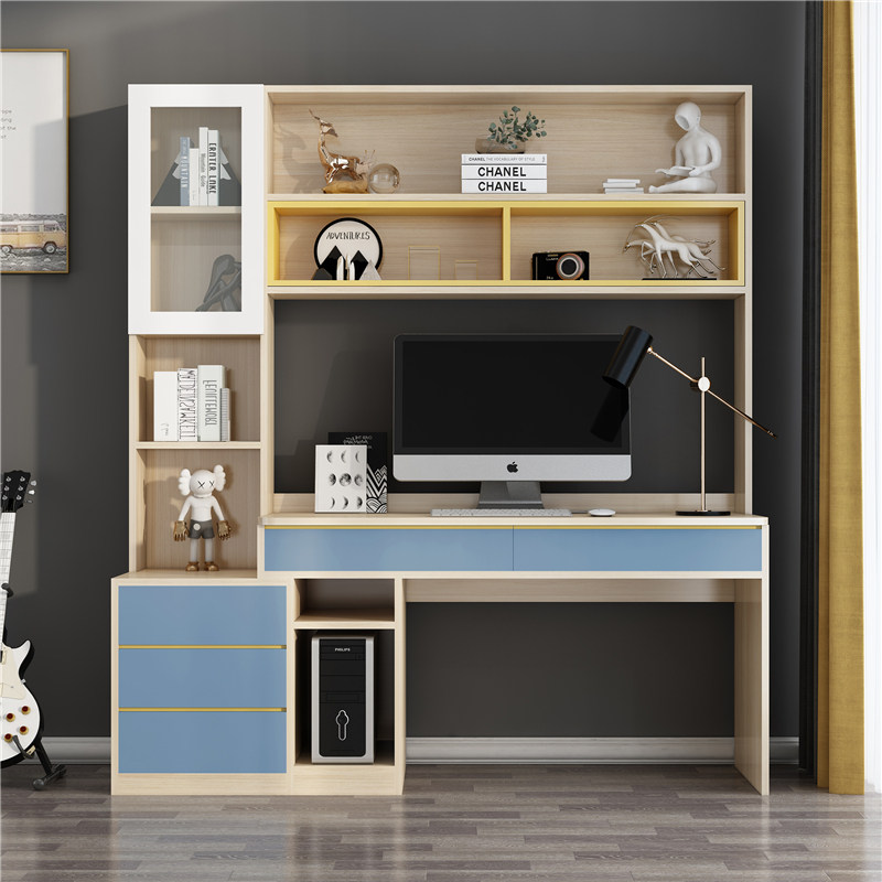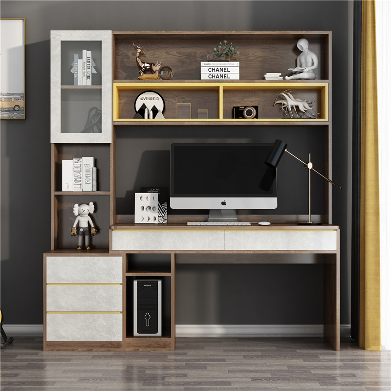 All solid wood bookcase Desk bookshelf combination Home student desk Study desk Light luxury desktop computer desk