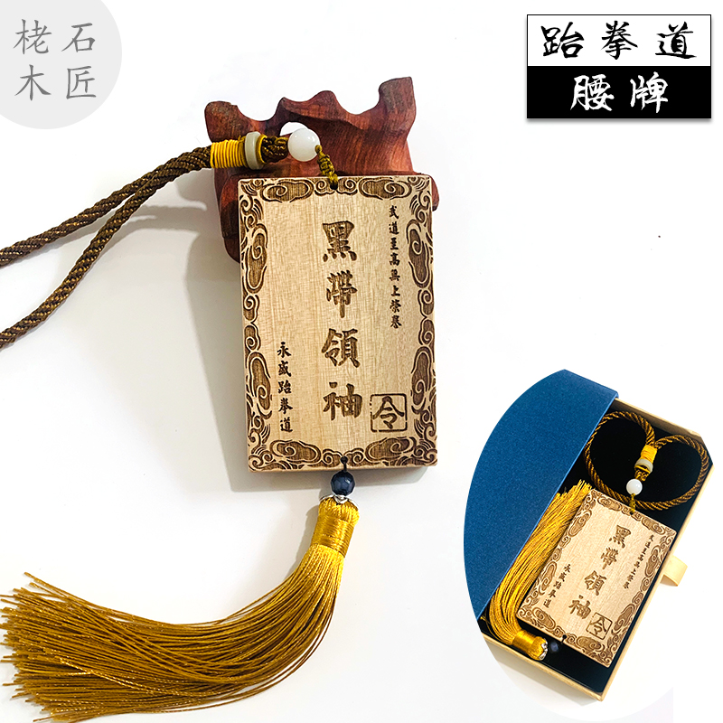 Custom camphor wood Logo token taekwondo master waist brand company activity gift carving hanging jewelry