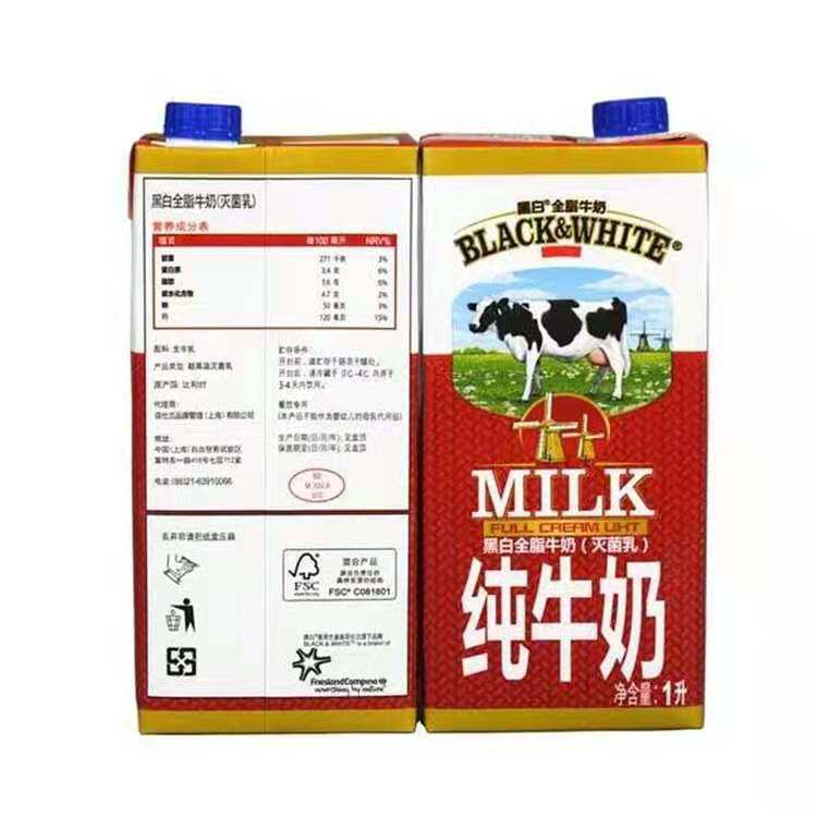 Black and white full fat milk net red dirty milk tea special imported full fat pure milk sterilized milk whole box: 1Lx12 box