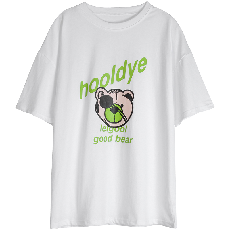 White blouses female summer 2022 new Korean version loose with slim bear printed short sleeves Don't make a small crowd T-shirt