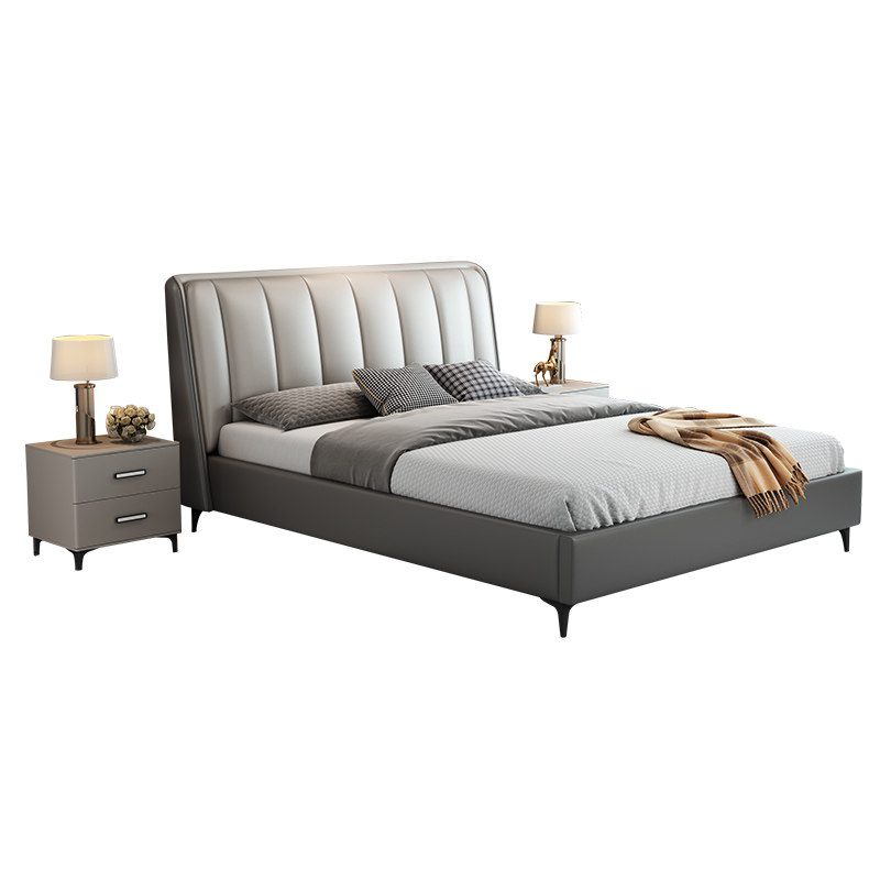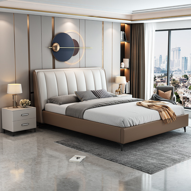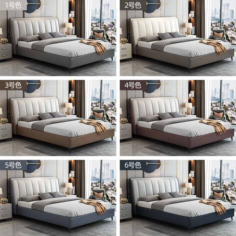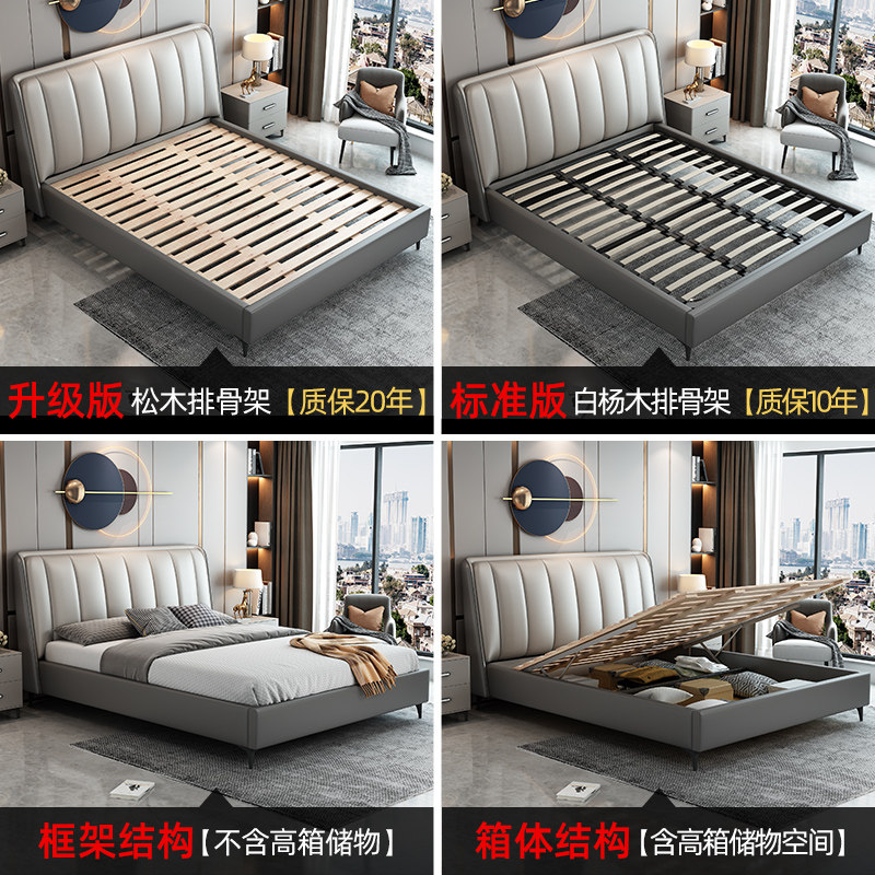 Light luxury bed modern minimalist Nordic bedroom leather bed minimalist high box storage storage double bed wedding bed master bedroom king bed