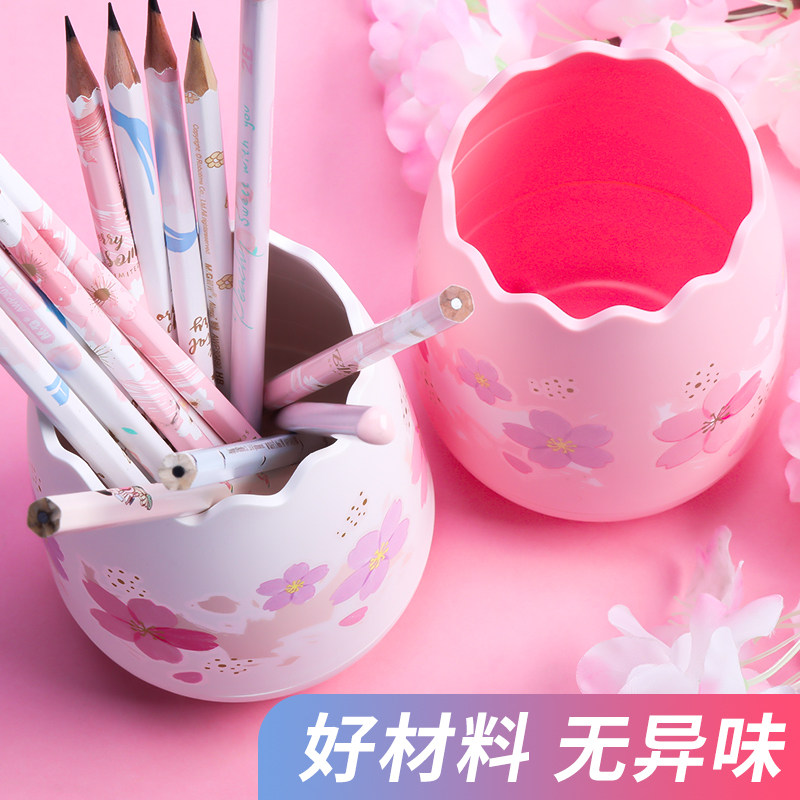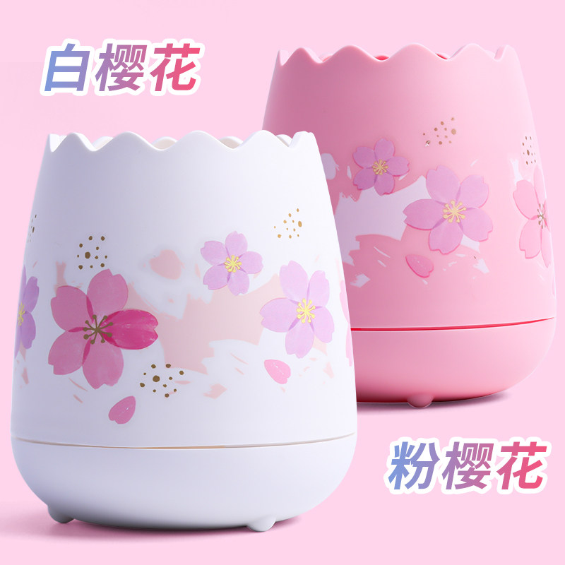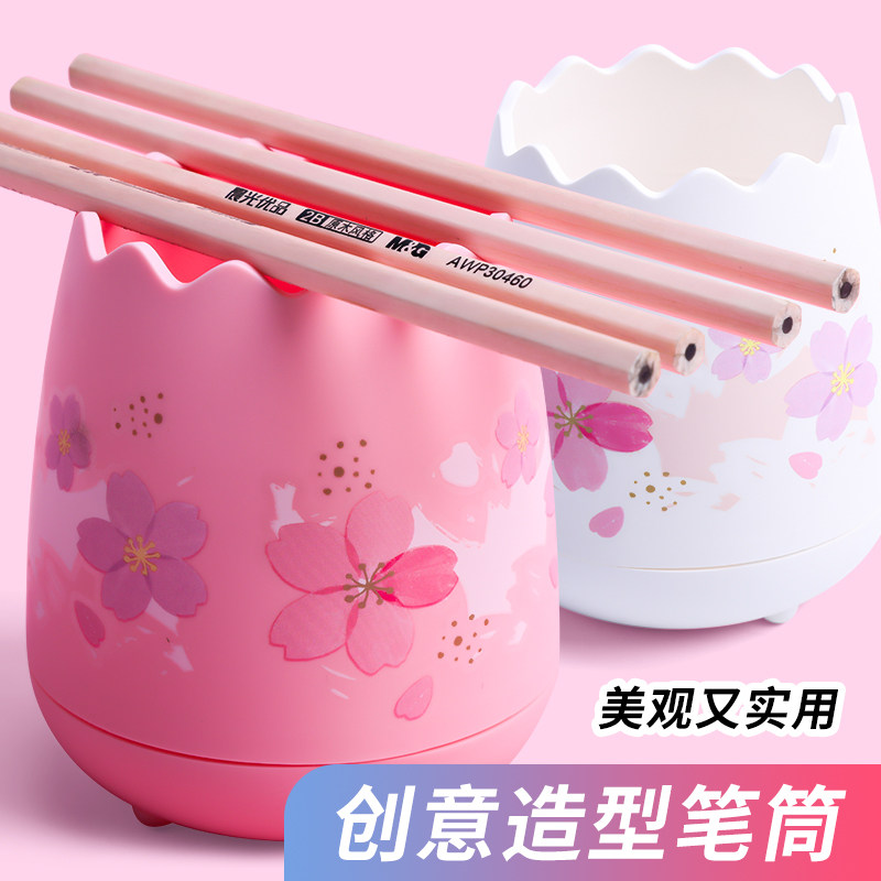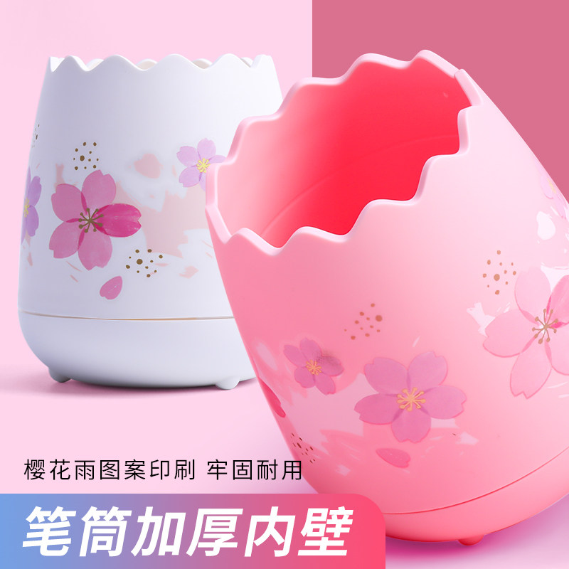 Morning light pen holder containing box Cherry Blossom Rain Series Brief Office Desktop Creative Multifunction Pen Holder Cute Adolescent Girl Lead Pen Holder Small Freshener Students With Pen Case Swing Piece Large-capacity Eggshell Modelling