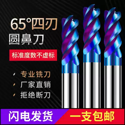 Imported 65 degree round nose knife tungsten carbide 4-blade R-angle bull nose knife hardened steel milling cutter 2R0 5 10R0 5